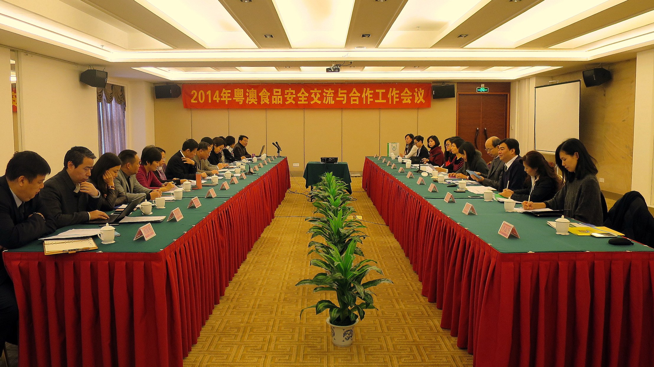 會議由粵方專責小組代表廣東省食品藥品監管局副局長、省食安辦副主任吳聖明、澳方專責小組代表民政總署管理委員會委員吳秀虹主持。民政總署、衛生局、海關、經濟局、旅遊局、教育暨青年局等專責小組成員,以及廣東省食品藥品監管局、廣東省食品安全辦公室、廣東出入境檢驗檢疫局、廣東省農業廳、廣東省衛生和計劃生育委員會、廣東省海洋與漁業局、廣東省人民政府港澳事務辦公室等部門代表及專家參與會議。