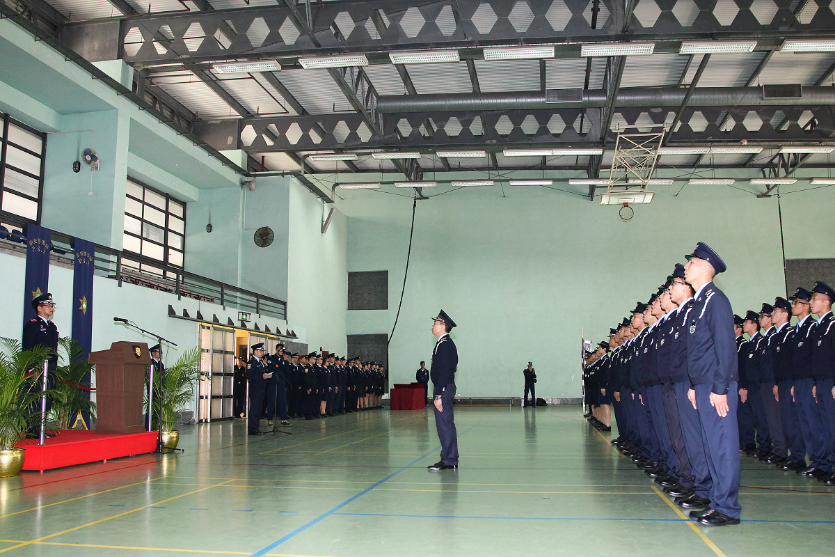 今天(12月9日)上午十二時,在治安警察局特警隊大樓內舉行了155名警員的就職典禮。儀式由治安警察局副局長黎錦權副警務總監主持。出席儀式的還有局內各部門的廳長及負責人,為新警員戴上警章。隨後進行宣誓儀式,效忠澳門特別行政區政府。