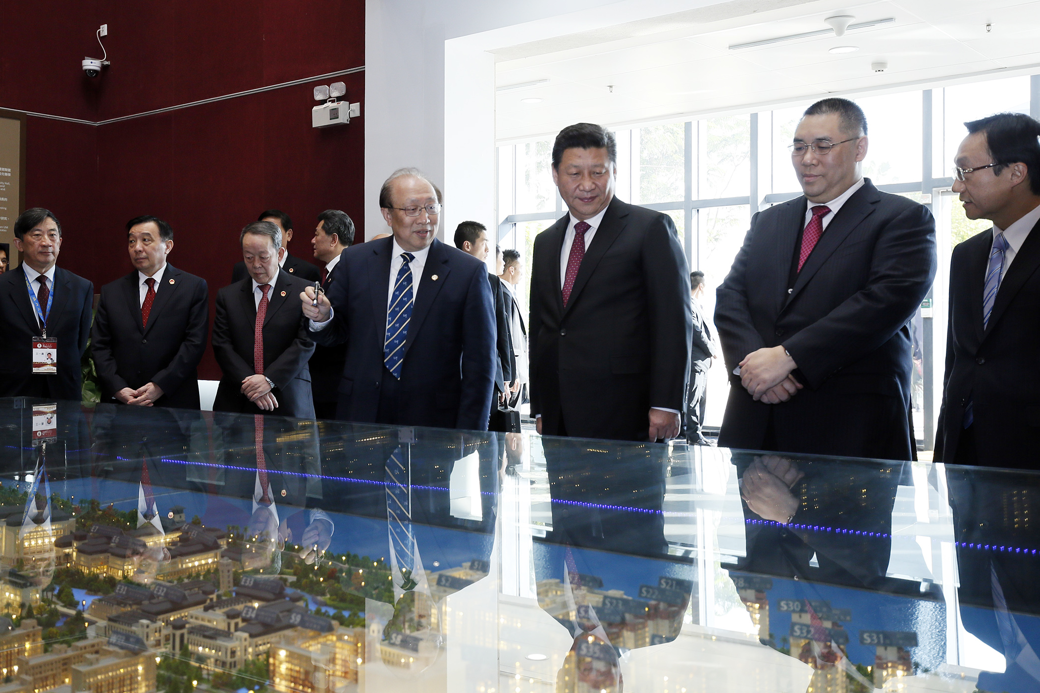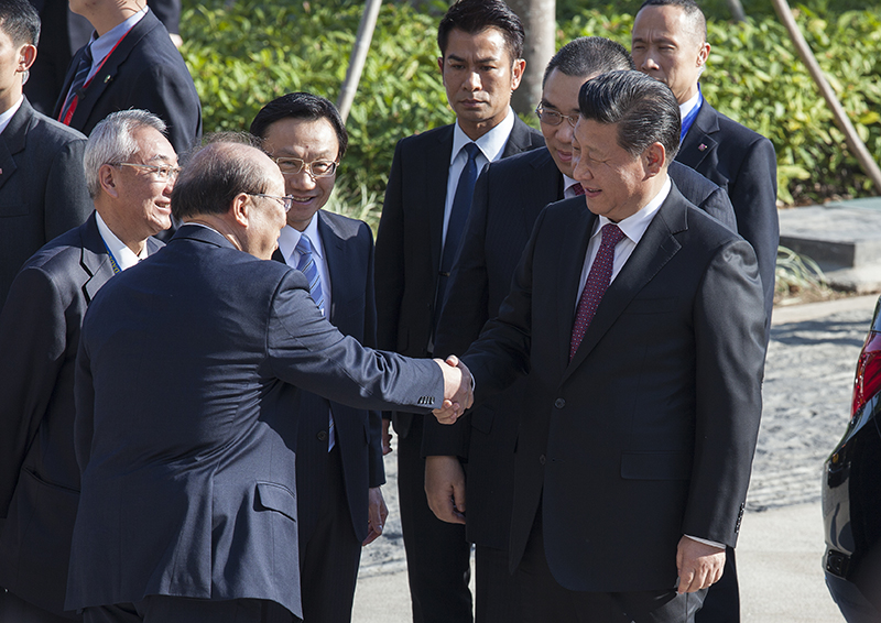 習近平主席一行在行政長官崔世安陪同下於下午三時許到達澳大,社會文化司司長譚俊榮、澳大校董會主席林金城、校長趙偉在場迎接。是次是習近平主席首次踏足澳大新校園,他抵校園後前往參觀大學展館。趙偉校長向習主席介紹大學的整體規劃、歷史和辦學理念、兩個國家重點實驗室的科研成就,以及大學圖書館的珍藏古籍。習主席讚揚澳大新校園環境好,在辦學制度理念上也有很多的創新。趙偉校長表示:“一定會把澳大辦得更好,為澳門、為國家增光。”