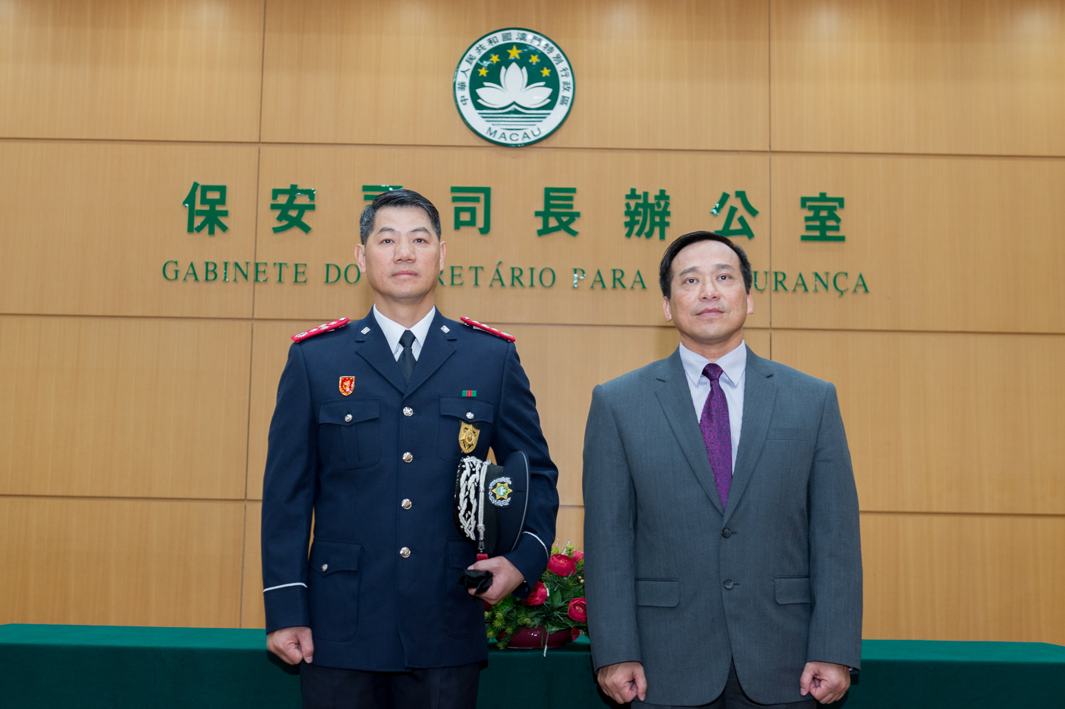 就職儀式於二○一四年十二月二十六日上午十一時在保安司司長辦公室進行。司法警察局局長周偉光及治安警察局局長梁文昌在保安司司長黃少澤監誓下,並在保安司司長辦公室主任張玉英及保安司轄下各部門領導和主管的見證下宣誓就任。
