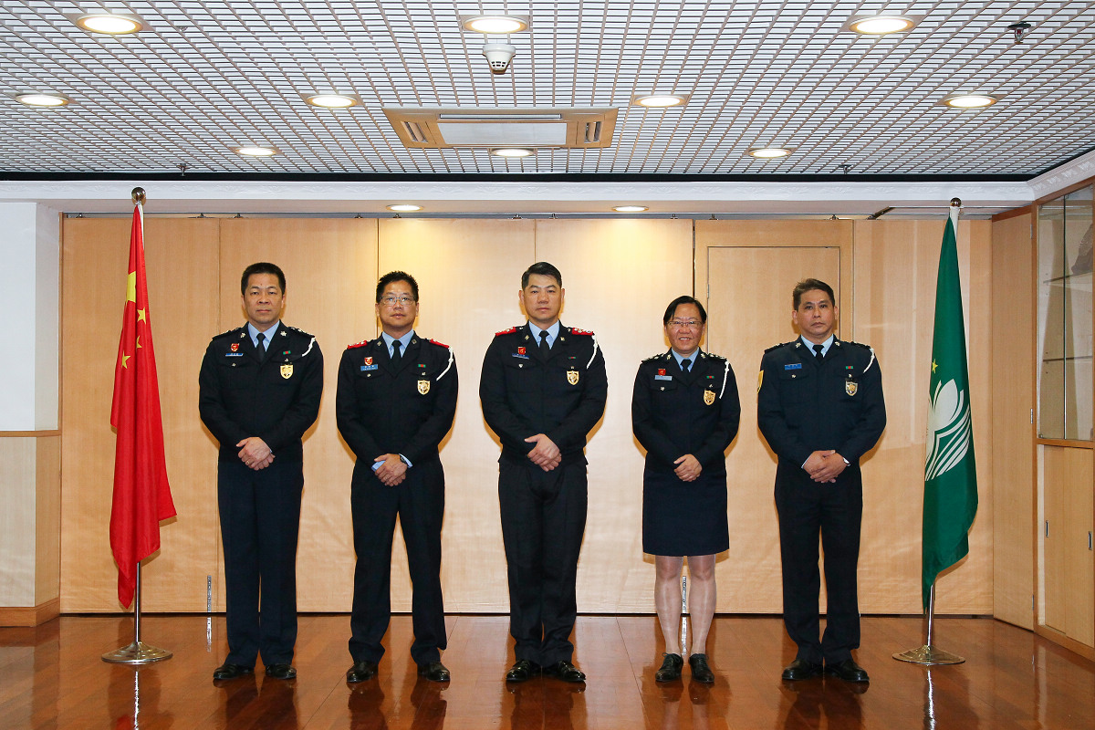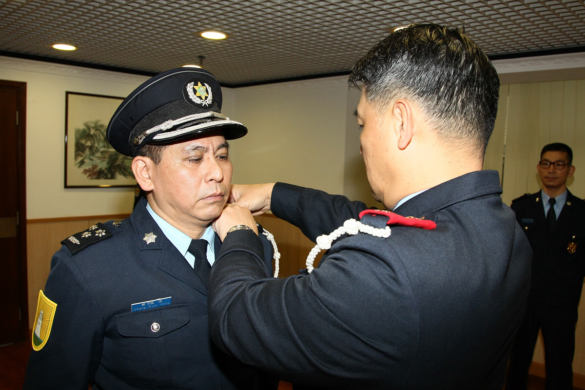 今天 (一月十二日) 中午10時,在治安警察局總部內舉行了警司晉升儀式。儀式由治安警察局局長梁文昌警務總監、副局長黎錦權副警務總監及代副局長吳王碧瑤警務總長主持。出席儀式的還有澳門警務廳廳長及資源管理廳代廳長,為警官曾國雄晉升為警司作出祝賀。