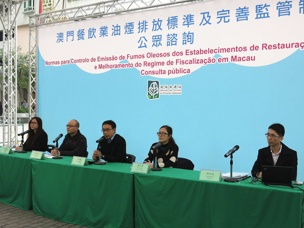 環境保護局現正進行《澳門餐飲業油煙排放標準及完善監管制度》的諮詢工作,並於今日(2015年1月25日)下午三時在綠楊花園休憩區舉辦公眾諮詢會,藉此介紹諮詢文本的內容,進一步收集社會的意見和建議。