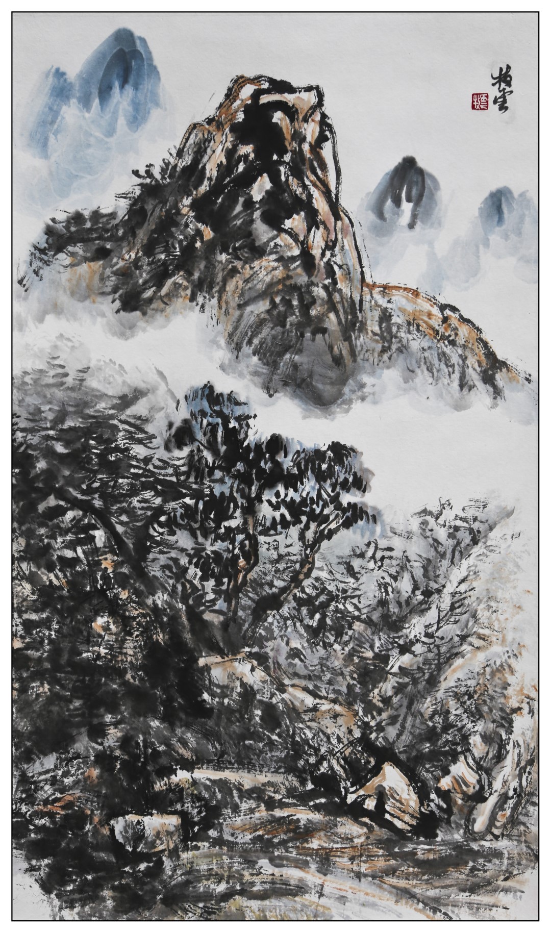師承筆墨、感悟生活,追求時代審美是張忠煥的藝術追求。這位有幸留在學校教學的青年教師,幾十年來一直以應野平為楷模,他感到中國畫發展到現在,已不能純粹玩弄筆墨技巧,完全按照古人技藝表現現實生活了。雖然他的山水畫作品因筆鋒老辣、構圖險峻,墨色濃郁被一些畫廊老闆垂青,可是他沒有待價而沽,而是像應老師那樣,寄情於山水之間,追求藝術、享受藝術。