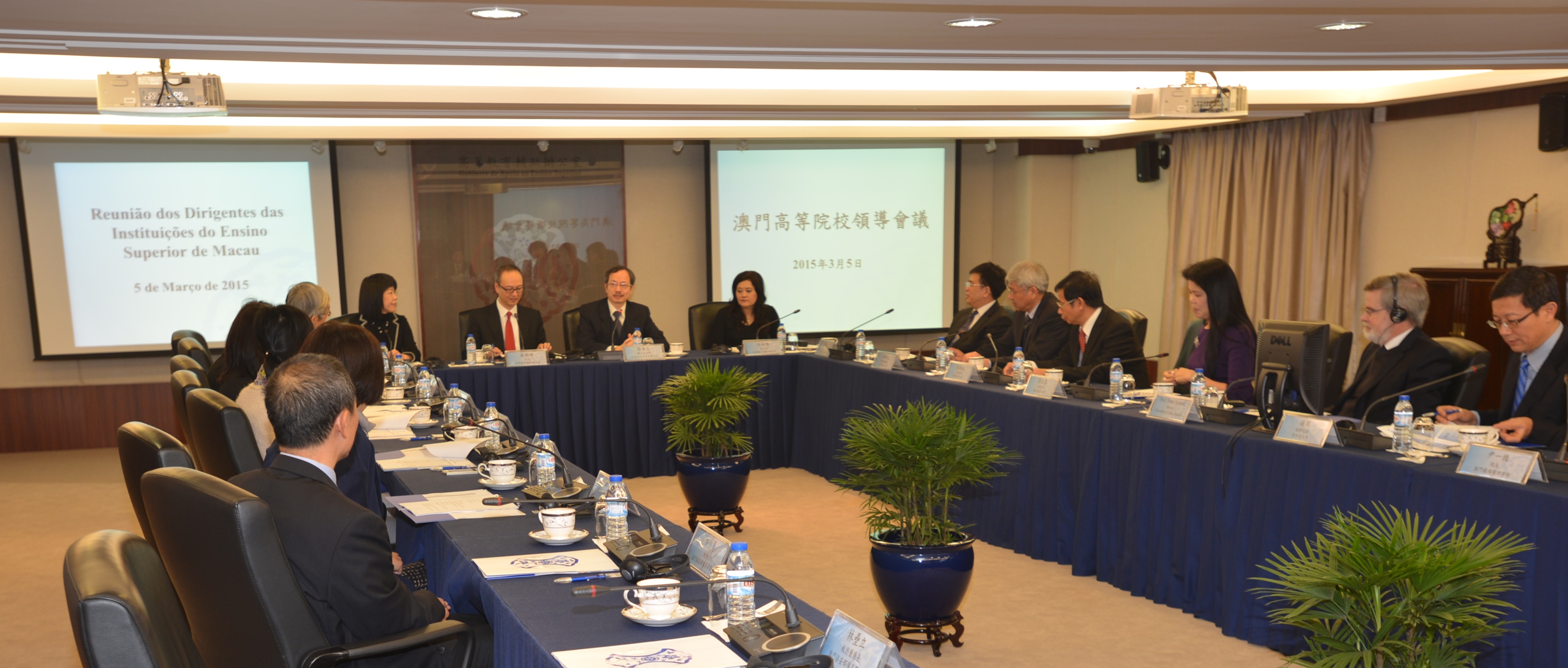 本澳九所高校領導及代表日前於高等教育輔助辦公室召開2015年澳門高等院校領導會議,與會者就2014/2015學年工作進行交流,並期望藉此加強與各院校之間的溝通和聯繫,共同推動本澳高等教育持續發展。