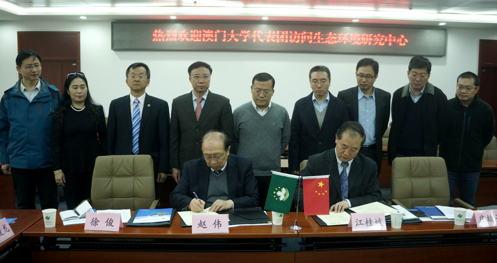 澳門大學與中國科學院生態環境研究中心今(1)日在北京簽署籌建備忘錄,共同籌建澳門環境監測與評估聯合實驗室,以善用雙方在環境監測與評估等相關方面具備良好的理論與技術研發基礎及專業的人才隊伍,加強環保項目監測工作的技術力量,提升澳門地區的環境監測水平。