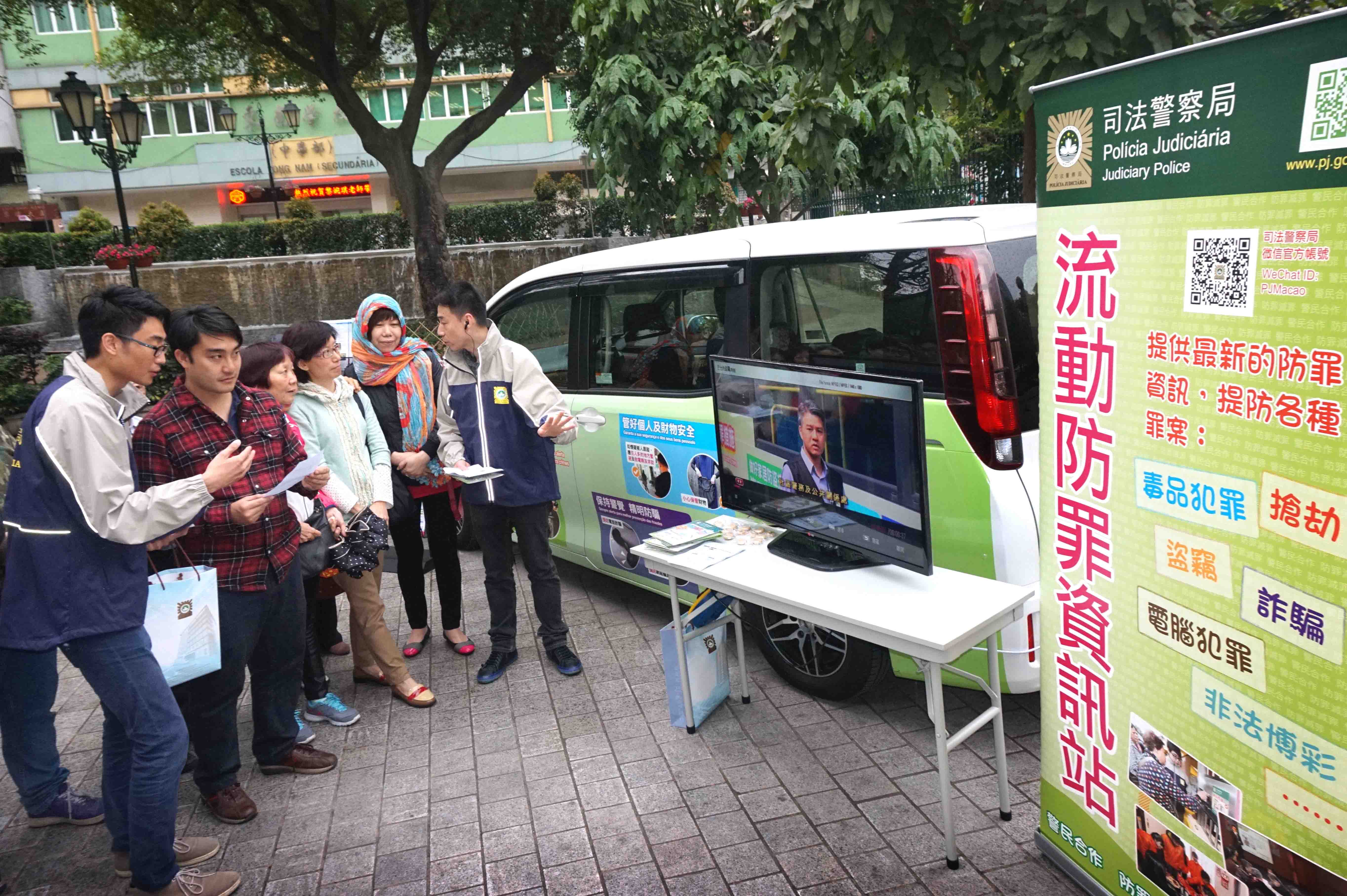 司警局表示將持續派員以流動方式到本澳各區公園、休憩區等設流動防罪資訊站進行防罪宣傳,進一步提高廣大市民的防罪滅罪意識。