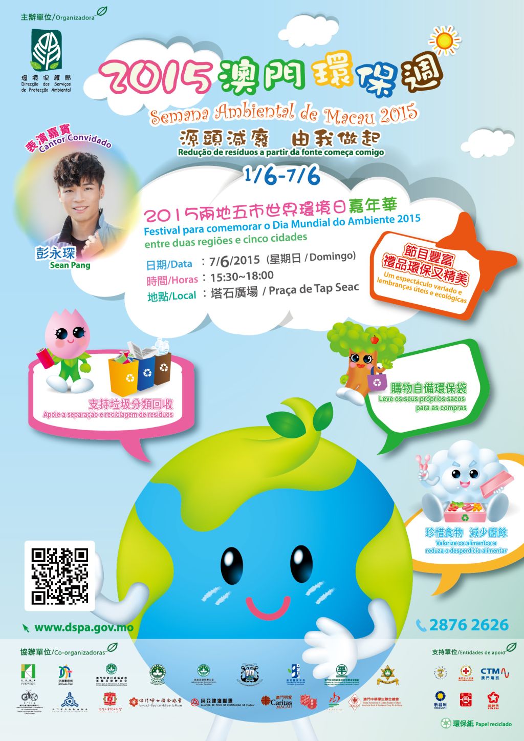 有關“2015澳門環保週"詳情,歡迎瀏覽環境保護局網站www.dspa.gov.mo或致電“環保熱線"2876 2626。