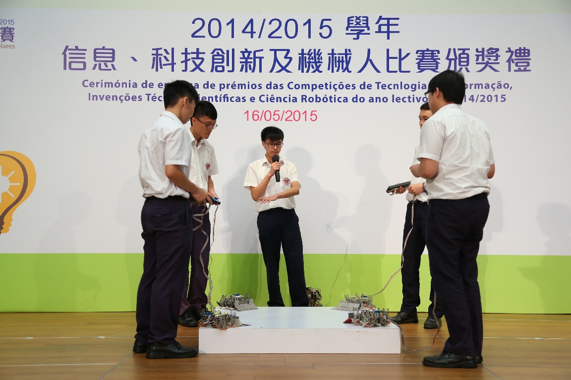 由教青局主辦的“2014/2015學年信息、科技創新與機械人比賽頒獎禮”於5月16日假澳門科學館會議中心順利完成。教青局希望透過“第13屆全國中小學信息技術創新與實踐活動澳門區選拔賽”、“澳門青少年科技創新作品選拔活動2015”、“澳門青少年綜合機械人科普活動選拔大賽2015”及“澳門科學與工程大獎賽2014”,甄選出優秀隊伍代表澳門申報“第30屆全國青少年科技創新大賽”及“第15屆明天小小科學家”獎勵活動,同時將組織學界代表隊參加共8項國際性、全國性及地區性賽事。