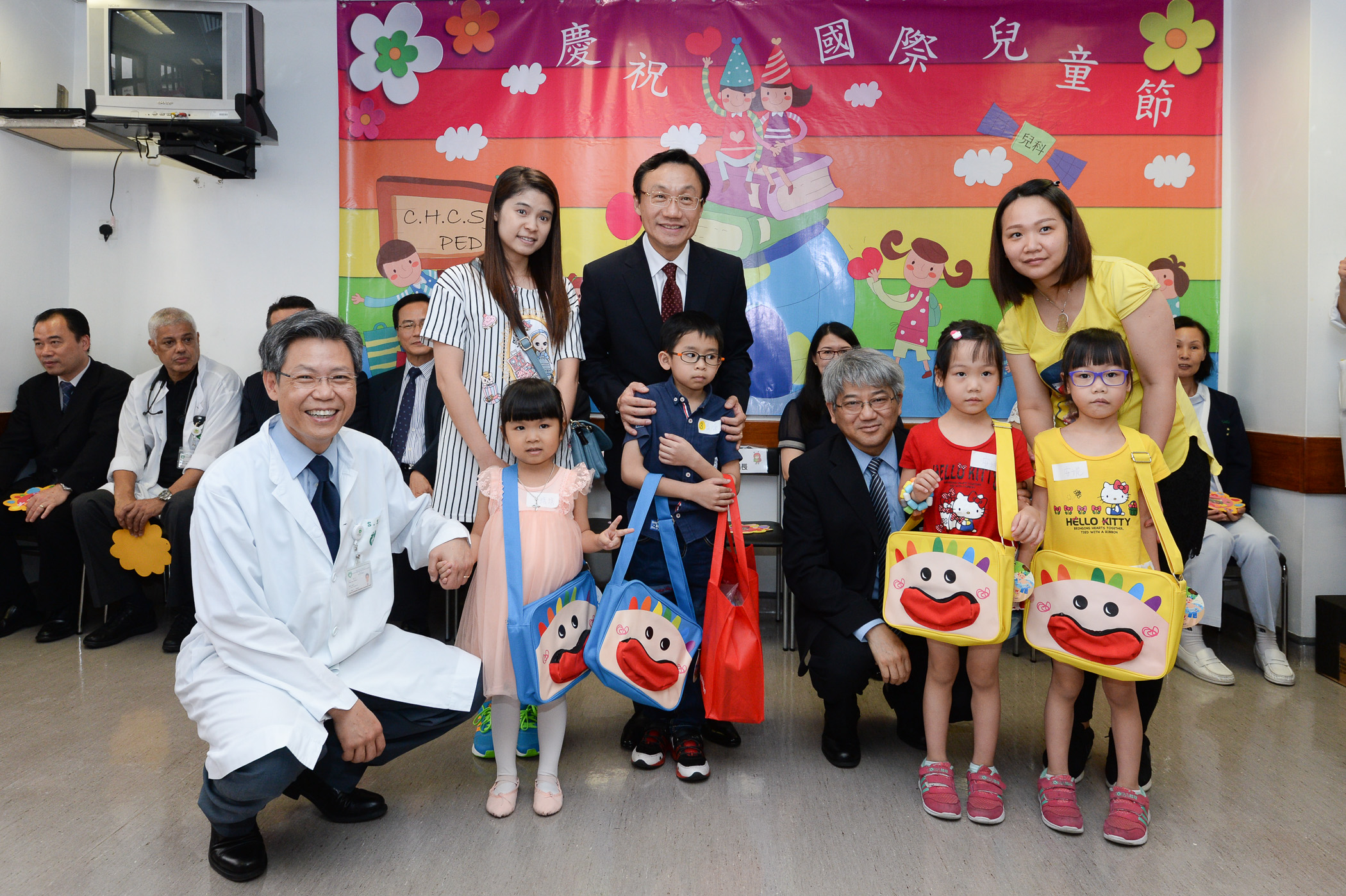 為響應「六一國際兒童節」,社會文化司譚俊榮司長於今日(6月1日)下午3時30分至5時,在社會文化司司長辦公室主任黎英杰、社會工作局局長容光耀、母親會理事飛曼華及施慧賢,以及活動組織委員會代表的陪同下,分別前往鏡湖醫院及仁伯爵綜合醫院,探望正在留院的兒童。譚司長在鏡湖醫院致辭表示:為響應聯合國的呼籲及根據中央政府的指示,特區政府今年將有關兒童權利的工作納入施政範疇中,並計劃在婦女事務委員會加入兒童權利的諮詢工作,冀社會給予意見,作為施政工作的參考。接著,一眾嘉賓在鏡湖醫院院長馬學章、副院長吳培娟及相關人員的陪同下,向住院兒童及家長致送禮物及合照留念。