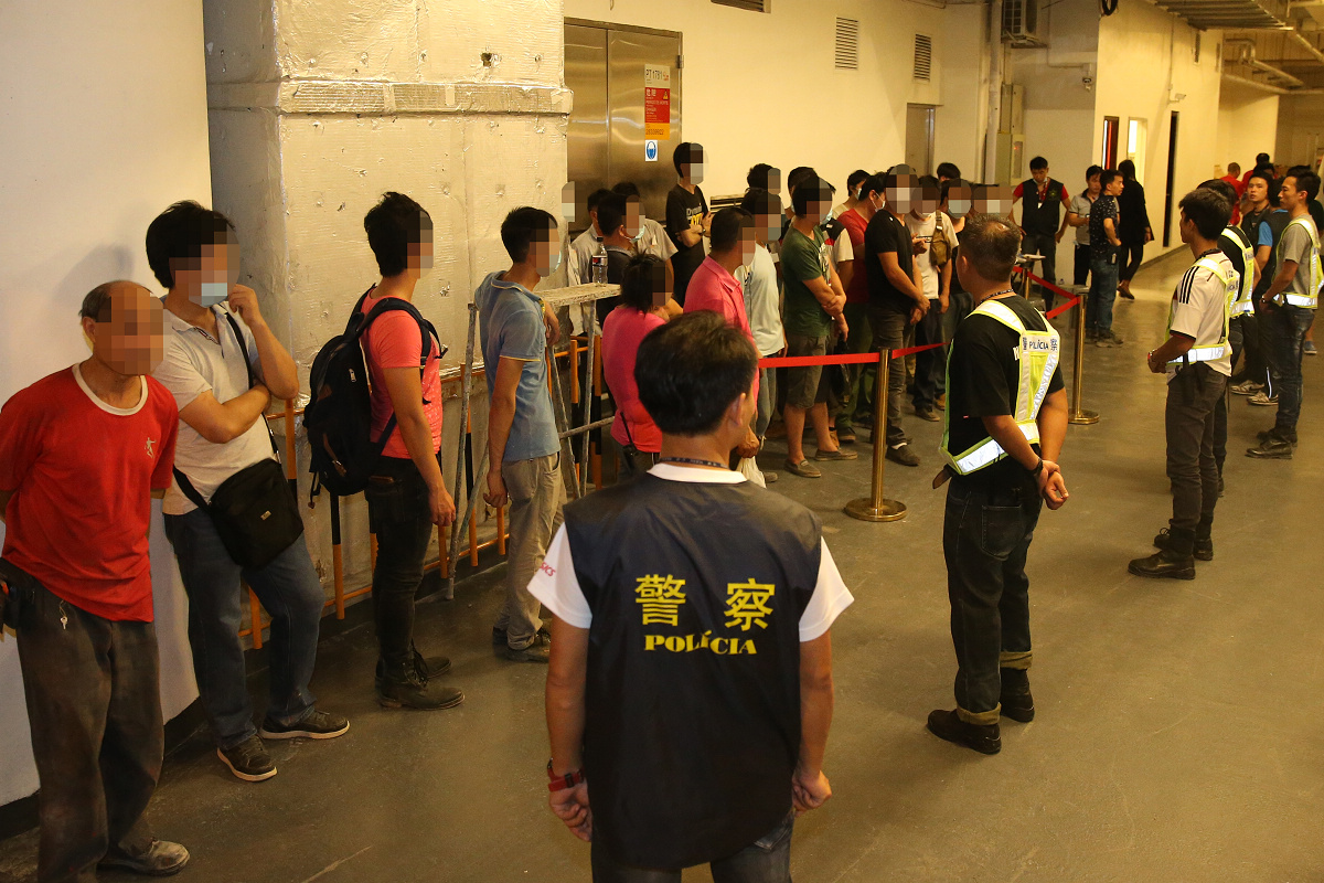 治安警根據情報,指有關建築工地內懷疑有人非法工作,故於昨晚8時到場突擊巡查。在4個小時的巡查行動中,總共派出八十多名警員,合共核查了96名工人身份。期間於氹仔某建築工地查獲18名工人涉及非法工作,持中國護照及中國往來港澳通行證;及查獲3名工人涉嫌過界工作;及後查獲1名澳門居民涉嫌僱用非法勞工。非法工作者年齡介乎18至57歲,月薪由2,500元至14,000元人民幣,均從事搬運及裝嵌工作。