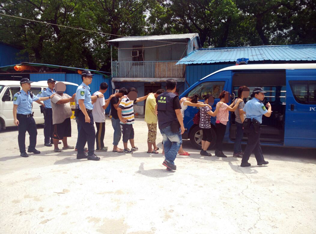 治安警根據情報,指該處懷疑有人非法工作,故於早上10時到場突擊巡查,並發現無牌經營之食品工場。在巡查行動中,合共核查了14名人士身份。期間查獲7名工人涉嫌過界工作,1名工人涉及非法工作;及1名澳門居民涉嫌僱用非法勞工。8名工人時薪為20元澳門幣,均從事煮食及清潔工作。