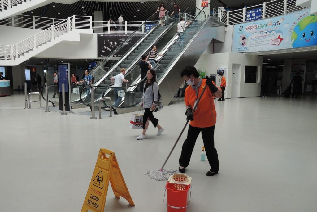 海事及水務局的人員今日到外港客運碼頭和氹仔臨時客運碼頭巡視。因應南韓的中東呼吸道綜合徵疫情,海事及水務局要求碼頭的管理公司和清潔公司加強日常的清潔消毒工作,以及增加清潔次數,確保碼頭環境的清潔衛生。