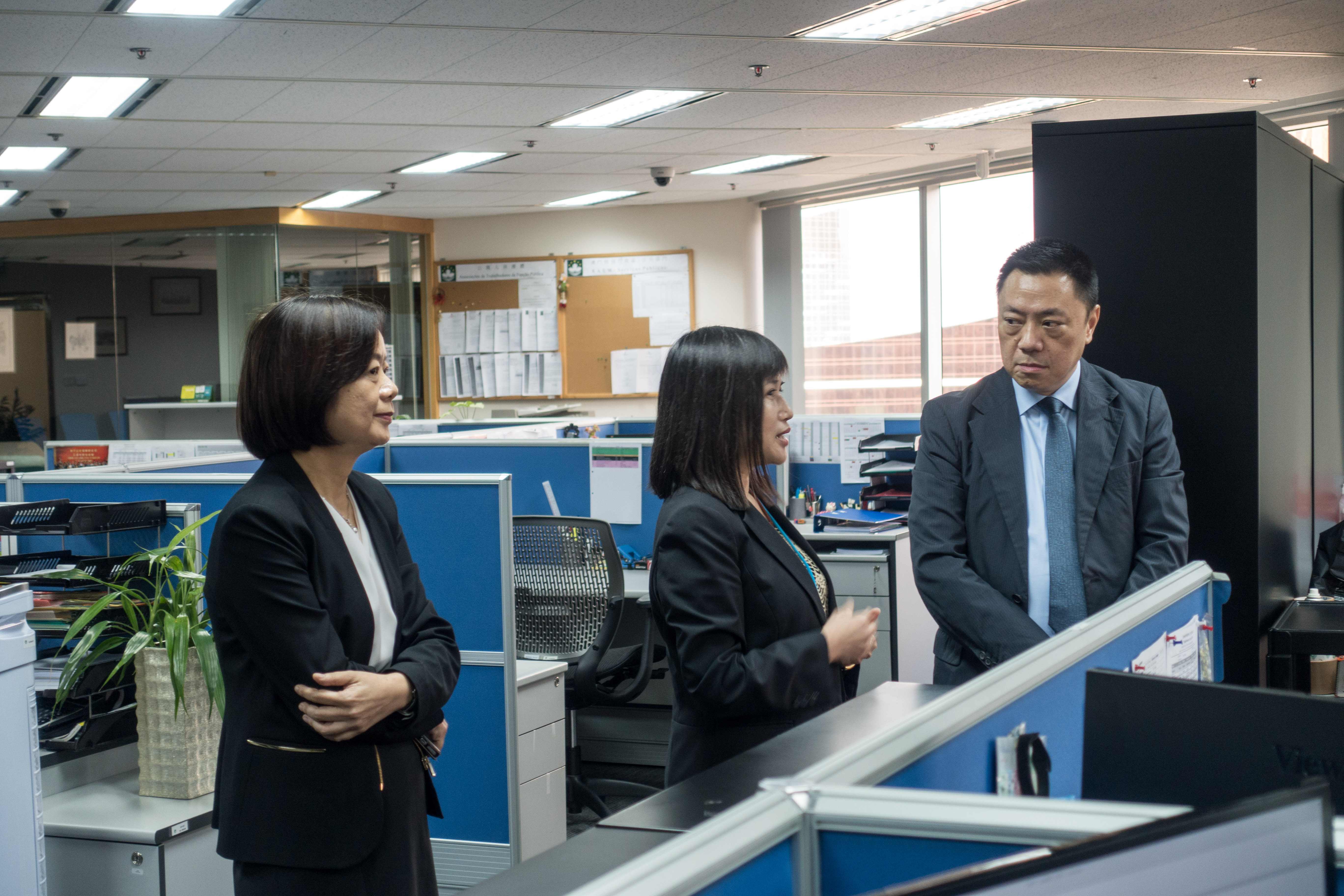 經濟財政司梁維特司長日前分別視察貿易投資促進局、博彩監察協調局、人力資源辦公室和金融情報辦公室,了解各部門工作流程和人力資源配置,鼓勵部門領導主管實施目標管理,並應用現代科技完善部門管理,提升工作效率及公共資源使用效益,從服務對象需求的角度優化服務,提高部門的政策執行能力。