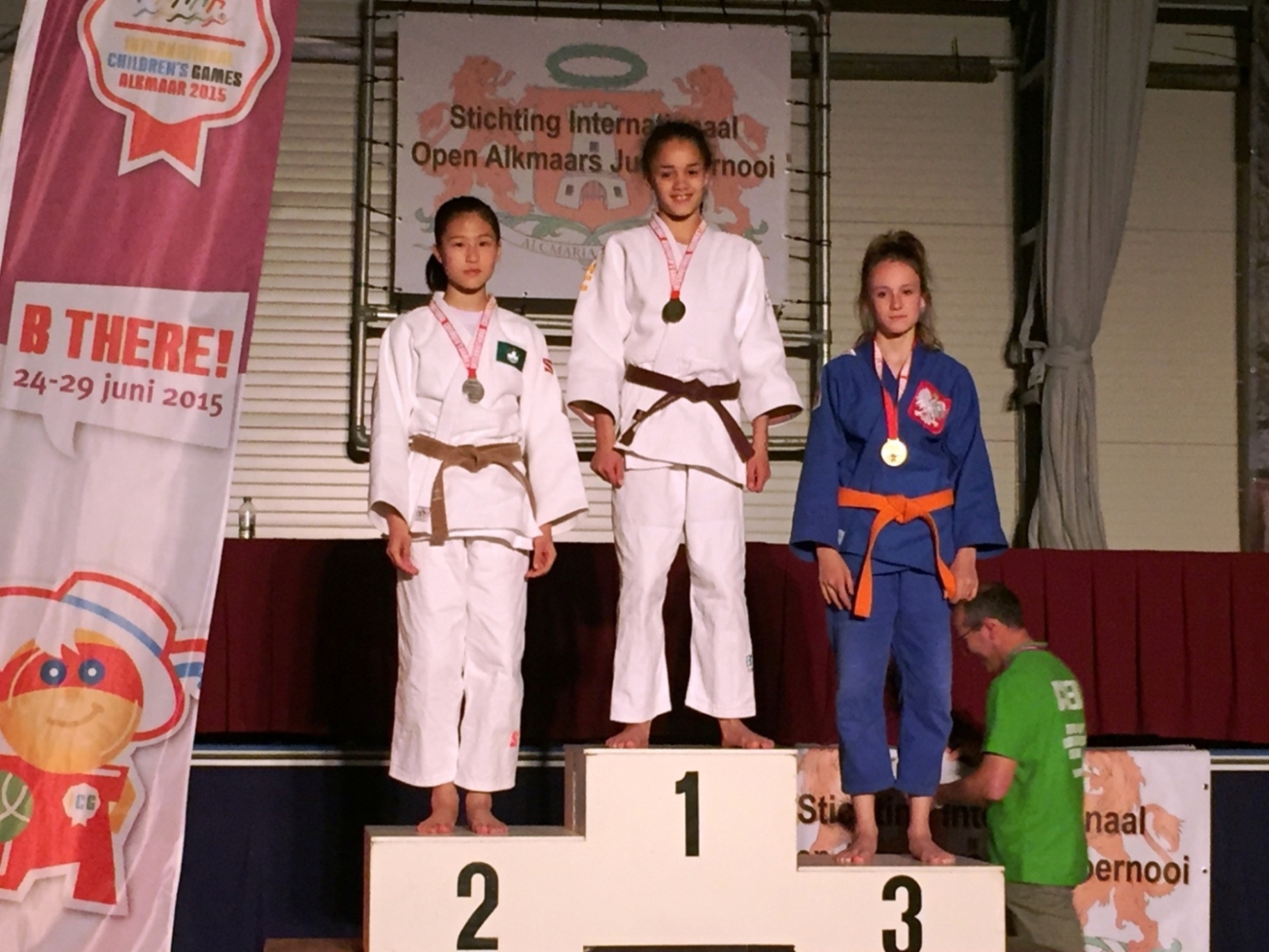 參加荷蘭阿爾克瑪爾市舉行的「2015年國際兒童運動會」的中國澳門體育代表團傳來好消息,昨日(26日)進行的第二日比賽中,劉家晴(LAO Ka Cheng)於柔道女子40公斤以下級別奪得一面銀牌,是體育代表團於本屆賽事中贏得的首面獎牌。