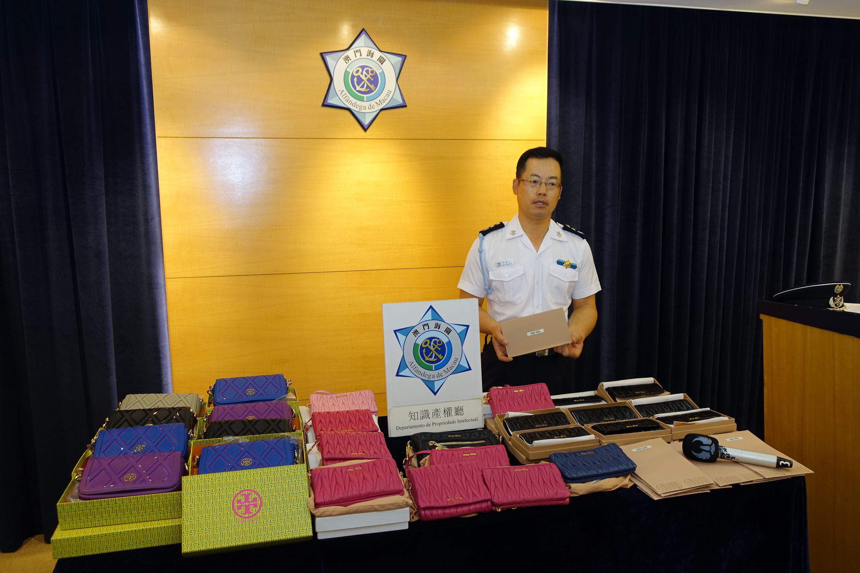 於六月二十九日,海關知識產權廳反互聯網侵權偵查人員在經過長期監察及收集資料,在掌握舉報所指的犯罪證據後,先後對目標人物和單位採取突擊行動。行動期間,在涉案人位於北區某大廈的單位內查獲假冒國際知名品牌商標包括有:「TORY BURCH」及「MIU MIU」之手袋及銀包等假冒產品,合共十七件。據初步調查顯示,有關貨物經由涉案人自行在外地訂購,再親自從外地帶回澳門並在嫌犯住所收藏,嫌犯聲稱入貨價格為二千一百元至二千三百元人民幣不等,出售價格為三千港元。所有緝獲物若以正品正價出售,約值十五萬澳門元。銷售方式主要利用電子社交平臺作工具,於互聯網上的社交群組中發佈資訊,由客戶在該社交平臺的群組上選購,再直接相約指定地點取貨並付款。上述物品經核實,其品牌商標已在澳門特區政府經濟局作出合法註冊登記,其中「TORY BURCH」貨品經品牌權利人代表作初步鑑定,初步核實涉案證物從品質、手工、標籤及手牌等作比較,均與正品不一,並確認為假冒貨品。除上述物品外,海關並把懷疑用作涉案工具的兩部手機等物品一併扣押。