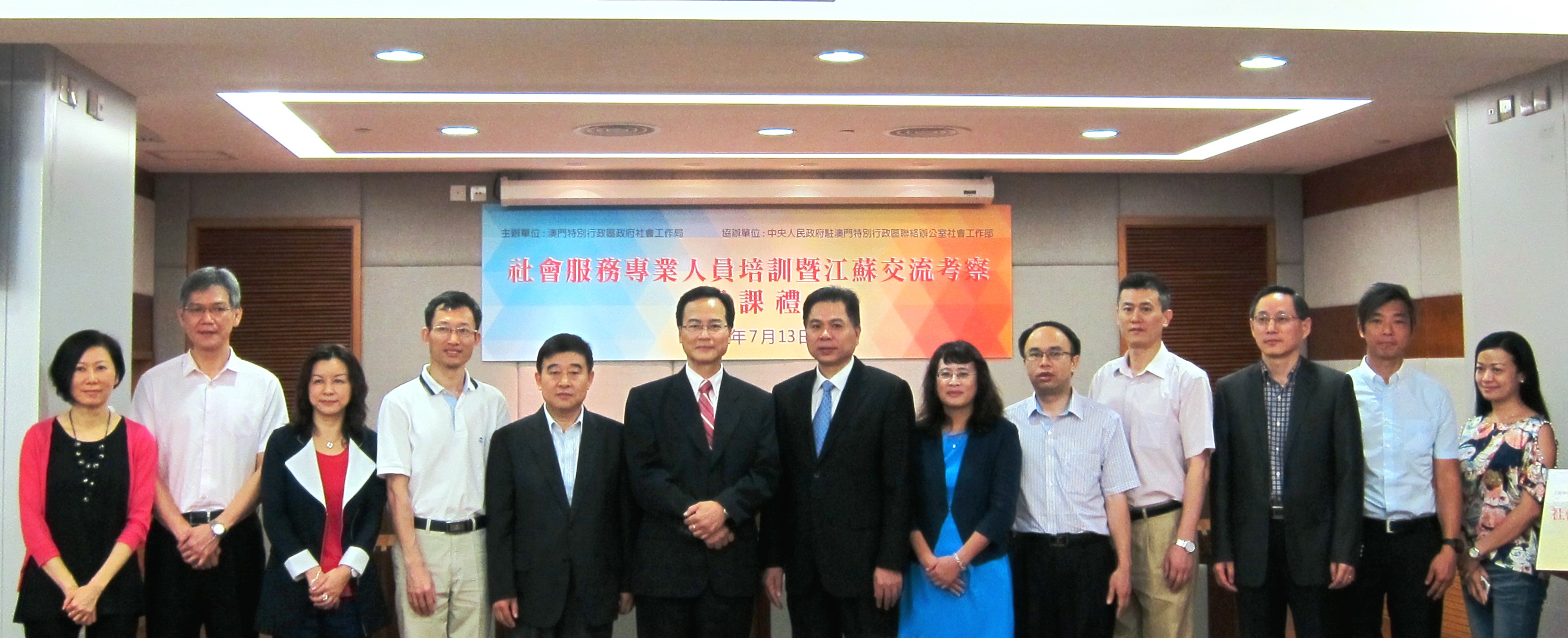 由澳門特區政府社會工作局主辦、中央人民政府駐澳門特別行政區聯絡辦公室社會工作部協辦的“社會服務專業人員培訓暨江蘇交流考察活動”,於本月13日上午九時三十分假公務人員培訓中心演講廳舉行開課禮。社會工作局容光耀局長表示,是項活動有助加深本澳社會服務人員對法制、國情以及兩地社會服務發展的認識和了解。