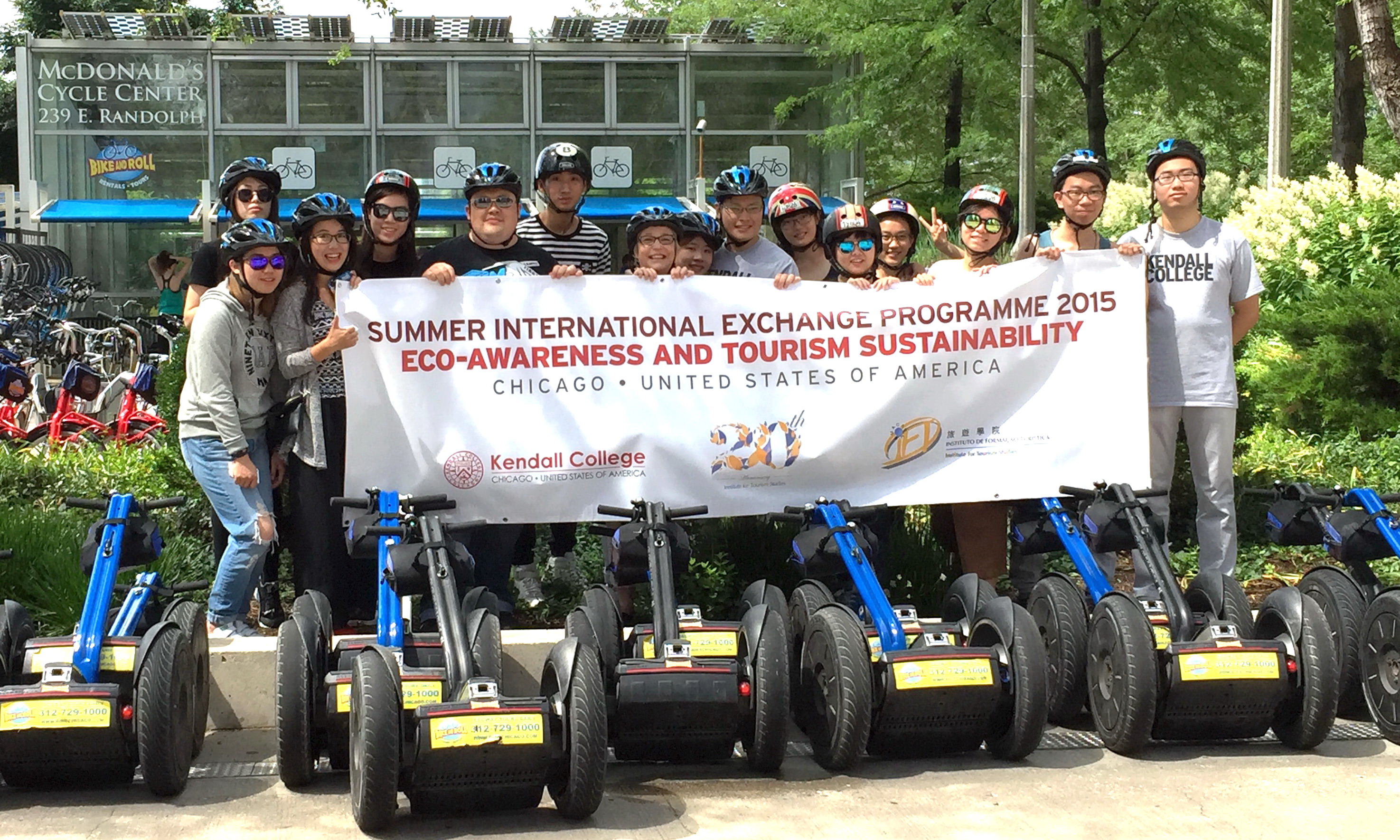 適逢20周年校慶,旅遊學院與肯代爾大學合作,將2015夏季國際交流課程帶到美國芝加哥。透過專題講座、工作坊及考察活動,13名於港澳高等院校就讀之本科學生深入認識了芝加哥市內的環保意識與綠化設施,以及其與當地旅遊業可持續發展的緊密關係;課程期間,他們亦獲安排與肯代爾大學學生和當地旅遊業界管理層人員進行交流,取得莫大裨益。
