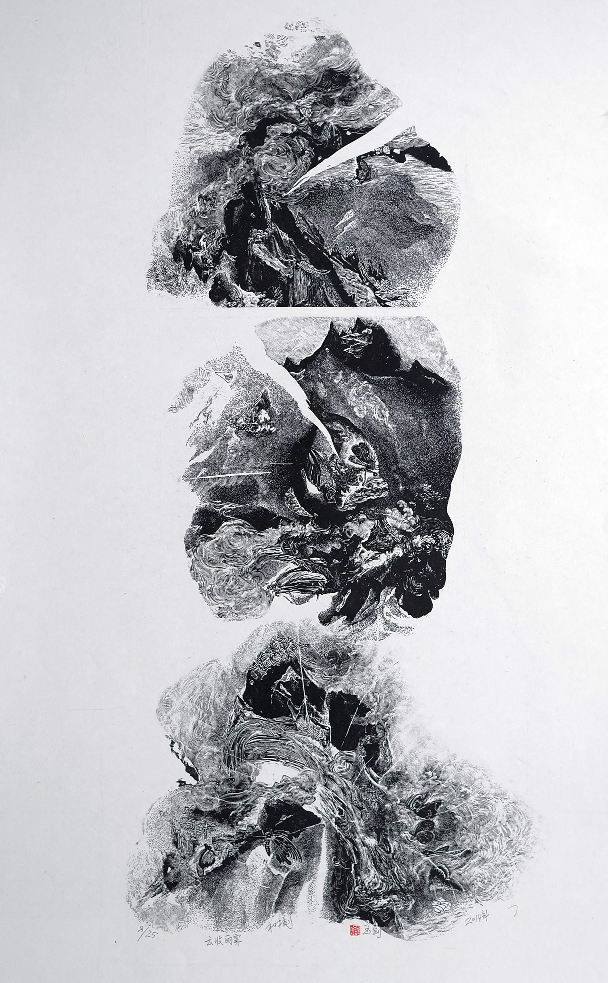 “第二屆澳門版畫三年展”為首次全球公開徵件,大會二十五萬元獎金金額為國際同類活動之最,吸引眾多名家來件參選。評審從五百六十件來自來世界各地的參選作品中經過近六小時的篩選,本澳版畫家蔣靜華的銅版畫作品《澳門人》獲金獎殊榮,銀獎是來自中國內地的版畫家王立星的《灰雪》、銅獎則為旅美華裔版畫家卿玉劍的《雲收雨霽》。此外,評審團分別頒予波蘭版畫家史別之(Magda Szplit)的《雨果》及日本版畫家作田富幸的《朋友-M》大會榮譽獎。