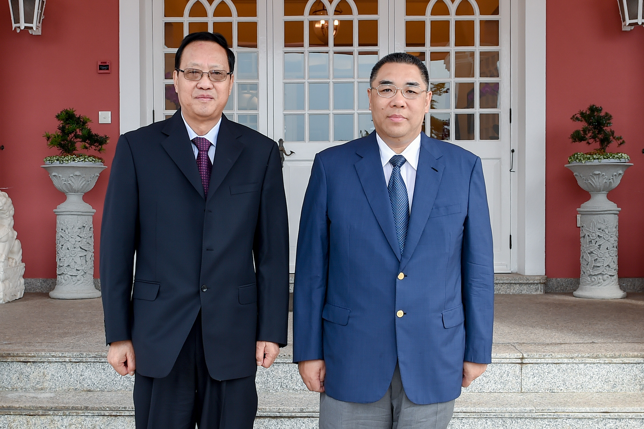 行政長官崔世安今(20)日在禮賓府與全國人大常委會副委員長、民盟中央主席張寶文會面,就教育與社會的進步發展交換意見。