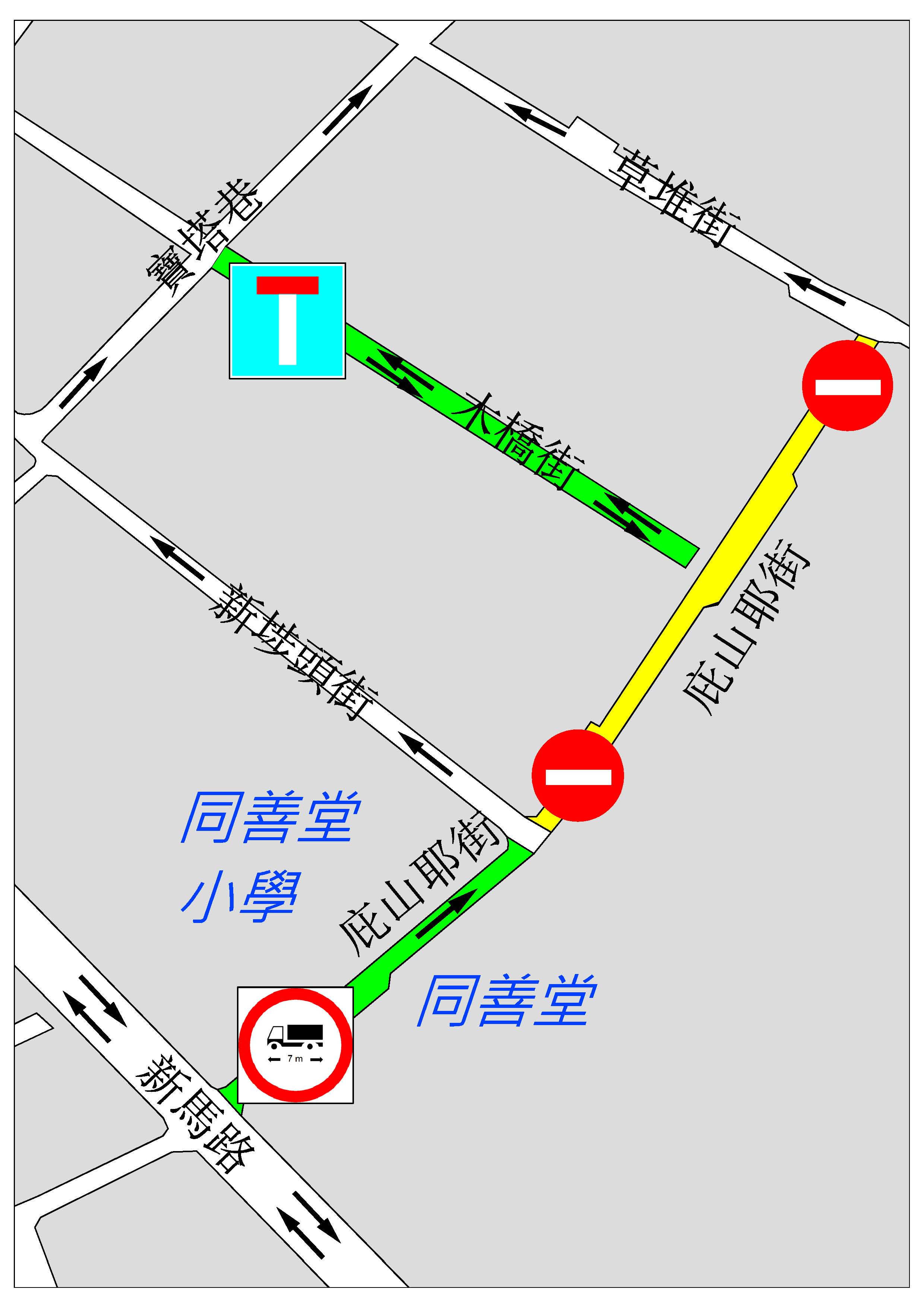 因應自來水公司和電力公司鋪設水管及電纜,介乎新埗頭街與草堆街之間的一段庇山耶街,本月8日(周六)上午11時起實施封閉交通,該處電單車車位及上落客貨區會暫停使用;介乎新馬路與新埗頭街之間的一段庇山耶街,則實施反方向行車,即車輛只可由新馬路往新埗頭街方向行駛,介乎寶塔巷及庇山耶街之間一段木橋街改為無出口道路,為期18日。