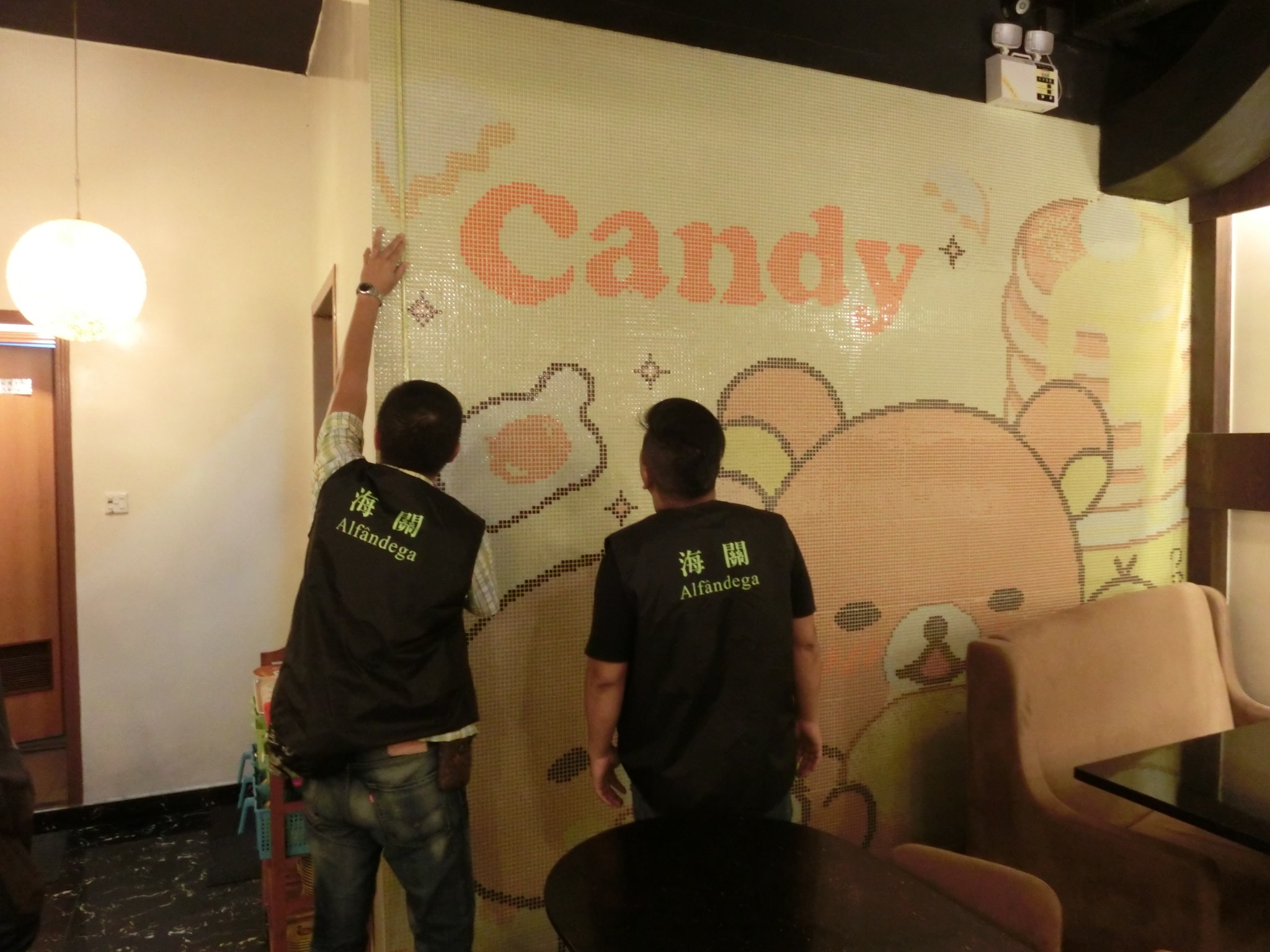於八月六日,海關知識產權廳偵查人員在經過長期監察及收集資料後,對舉報所指的甜品餐廳採取突擊行動。在行動期間,獲得相關品牌權利人全力協助,偵查人員對涉案店舖採取稽查行動,在位於北區某甜品餐廳內查獲一批懷疑假冒知名卡通商標的餐具及宣傳單張等,總數合共一千三百一十八件。同時,店舖內裝修設計之多幅大型牆壁圖案亦涉嫌侵犯「Rilakkuma」品牌商標權利,該店舖亦設有互聯網社交網絡專頁,網頁內曾發表帶有「Rilakkuma」商標圖案的文章或圖片,以作宣傳及招徠顧客。上述物品經核實,其品牌商標已在澳門特區政府經濟局作出合法註冊登記,除由海關偵查人員在現場作初步認別外,並得品牌權利人代表作初步鑑定,核實涉案物品從商標標識,物品顏色,卡通人物造型比例等各方面作比較,均與正品不符,確認為假冒貨品。