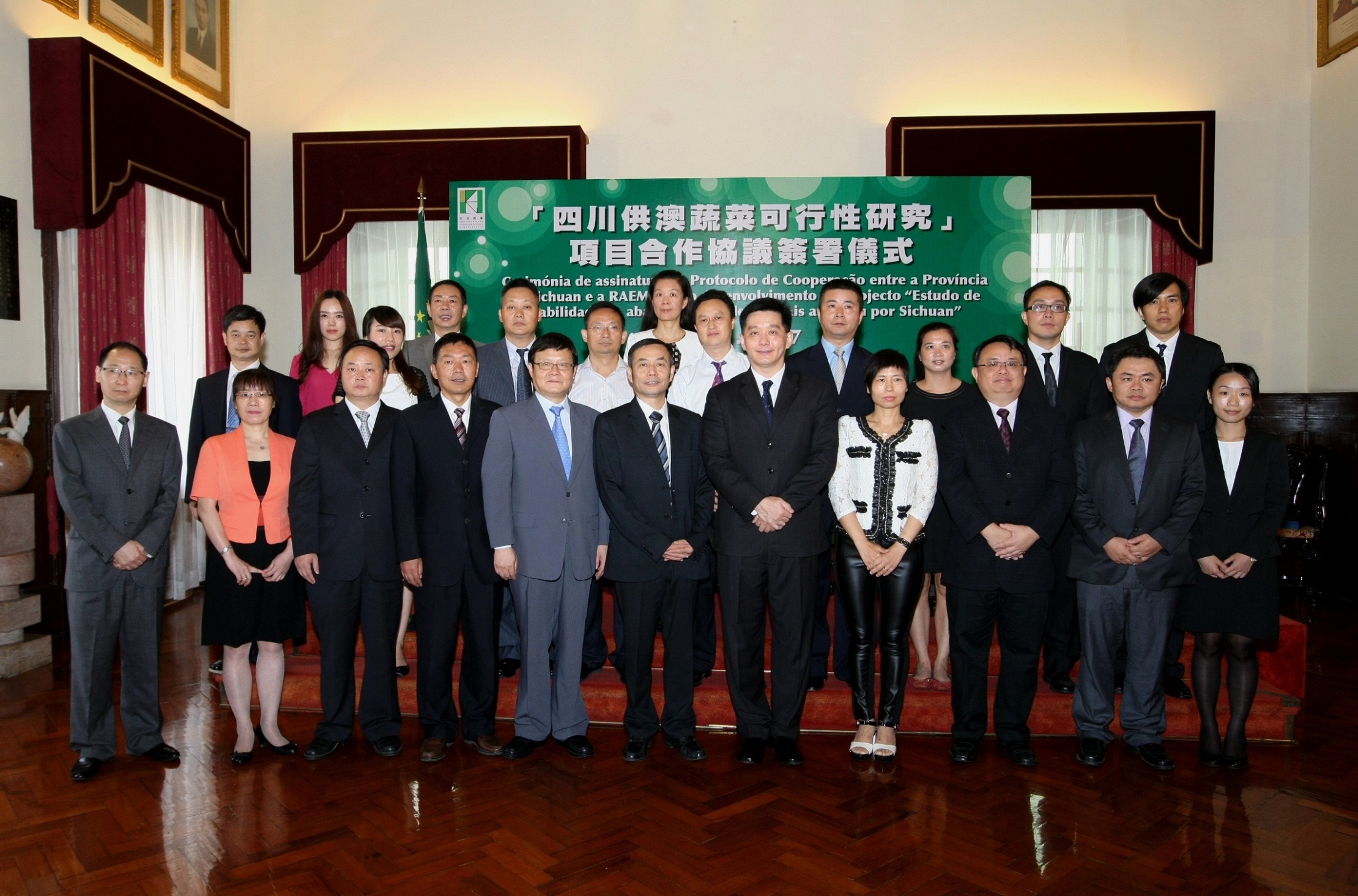 《「四川供澳蔬菜可行性研究」項目合作協議》簽署儀式於民署大樓禮堂舉行,由民政總署管理委員會主席黃有力與四川省農業廳廳長任永昌,分別代表本澳和四川簽署有關合作協議,象徵本澳和四川將以蔬菜供銷合作為重點,在推進兩地政府在泛珠三角區域合作的基礎上,加強包括農業的交流合作及落實工作設想方面,取得實質性的進展。