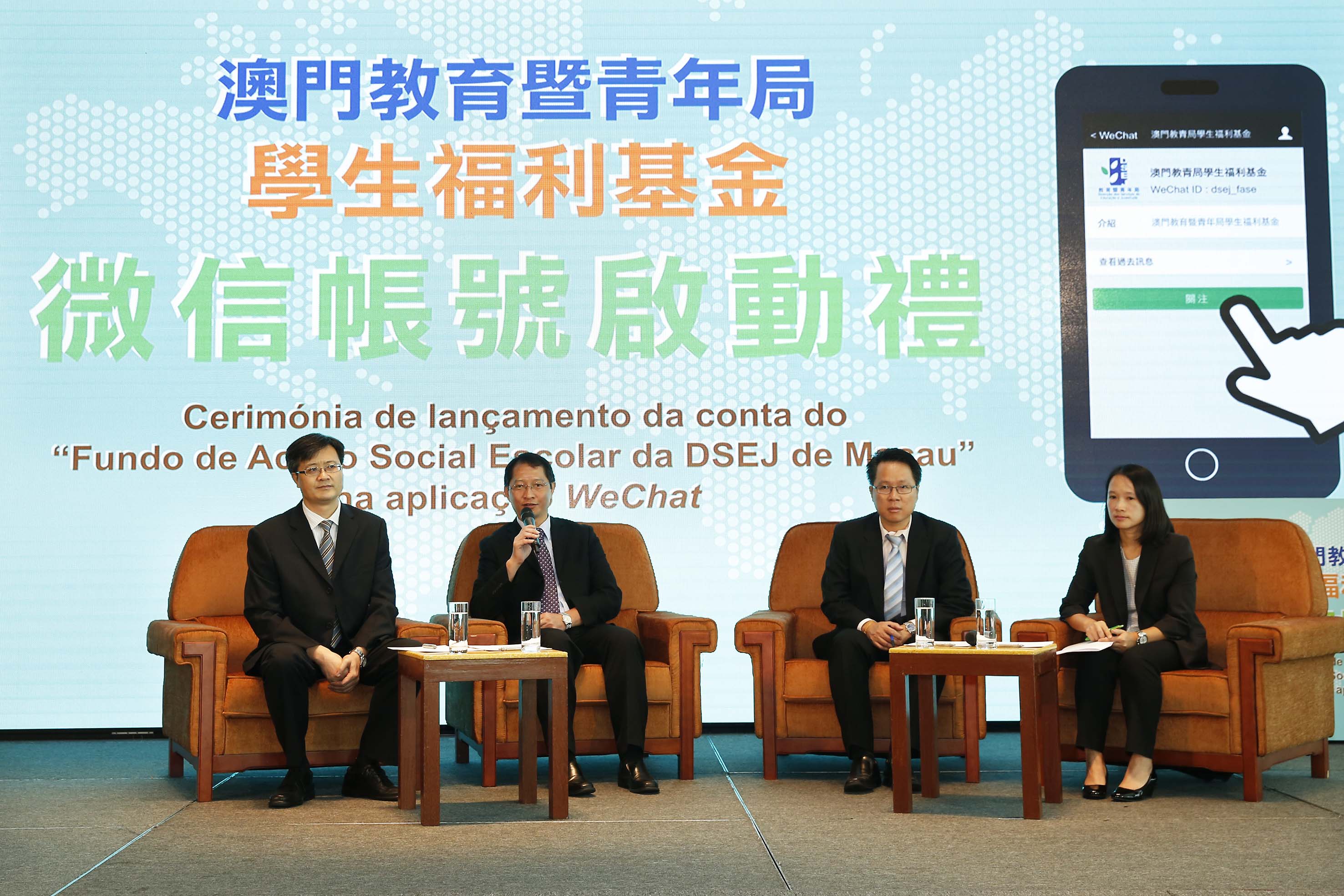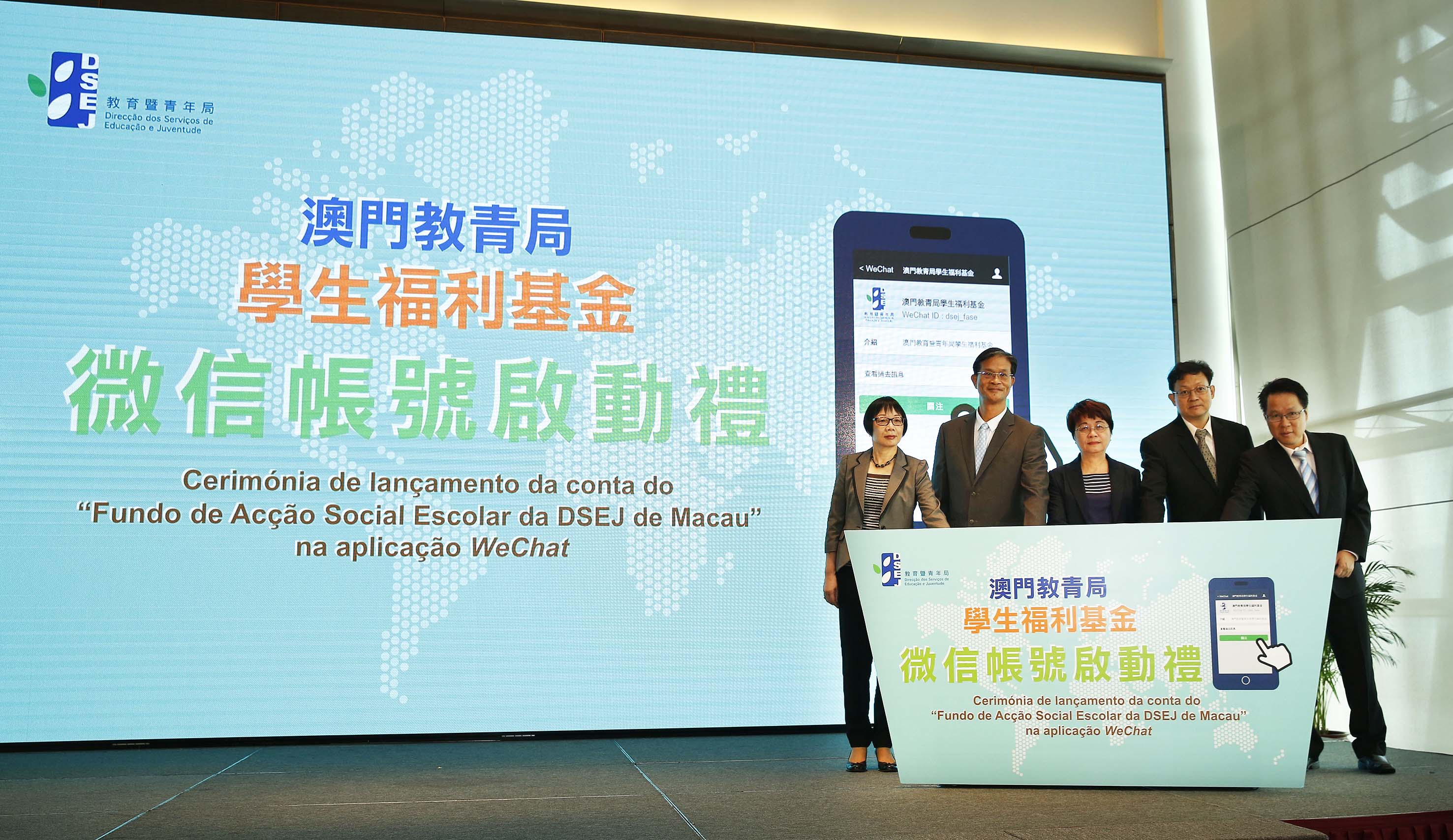 學生福利基金設立的“大專助學金計劃”,支持家庭經濟困難和鼓勵成績優異的學生升讀高等教育課程。為本澳培養更多優秀的人才。為加強與澳門以外地區升學的受惠學生之間的聯繫,增進學生對澳門社會發展的瞭解,以及與有關學生建立更快速、直接的溝通聯繫,學生福利基金於2015年8月開通“澳門教青局學生福利基金”微信帳號,以向受惠學生發佈訊息、分享資訊、收集意見等,並於8月24日假澳門旅遊塔會展娛樂中心舉行開通微信帳號的啟動禮。出席嘉賓包括學生福利基金行政管理委員會主席梁勵、社會文化司司長辦公室顧問惠程勇、教青局副局長老柏生、郭小麗,學生福利基金行政管理委員會委員朱國宏、薛榮滔,教青局主管人員,同時亦邀請了內地及台灣高校澳門學生組織代表參與。