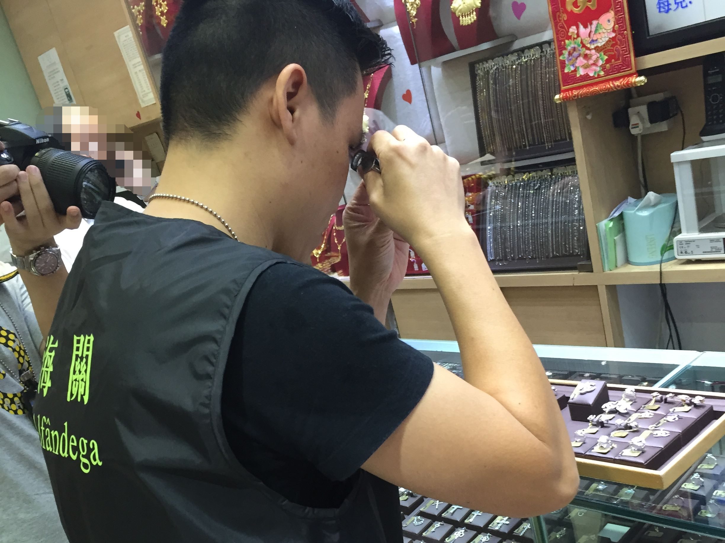 澳門海關近期接獲品牌權利人的舉報,指位於澳門中區及北區某連鎖珠寶金行集團旗下的多間店舖內,涉嫌售賣假冒其公司品牌的產品。海關收到舉報資料後,立即展開深入調查,並核實有關品牌商標已在澳門特區政府經濟局作出合法註冊登記。海關知識產權廳偵查人員鎖定屬同一集團的多間涉案店舖,採取不定期的監察。於九月一日,海關認為時機成熟,偵查人員進行突擊搜查行動,行動中發現八間同一店舖名稱的連鎖珠寶金行均有售賣侵權產品,涉案九名人士被帶返海關總部協助調查。