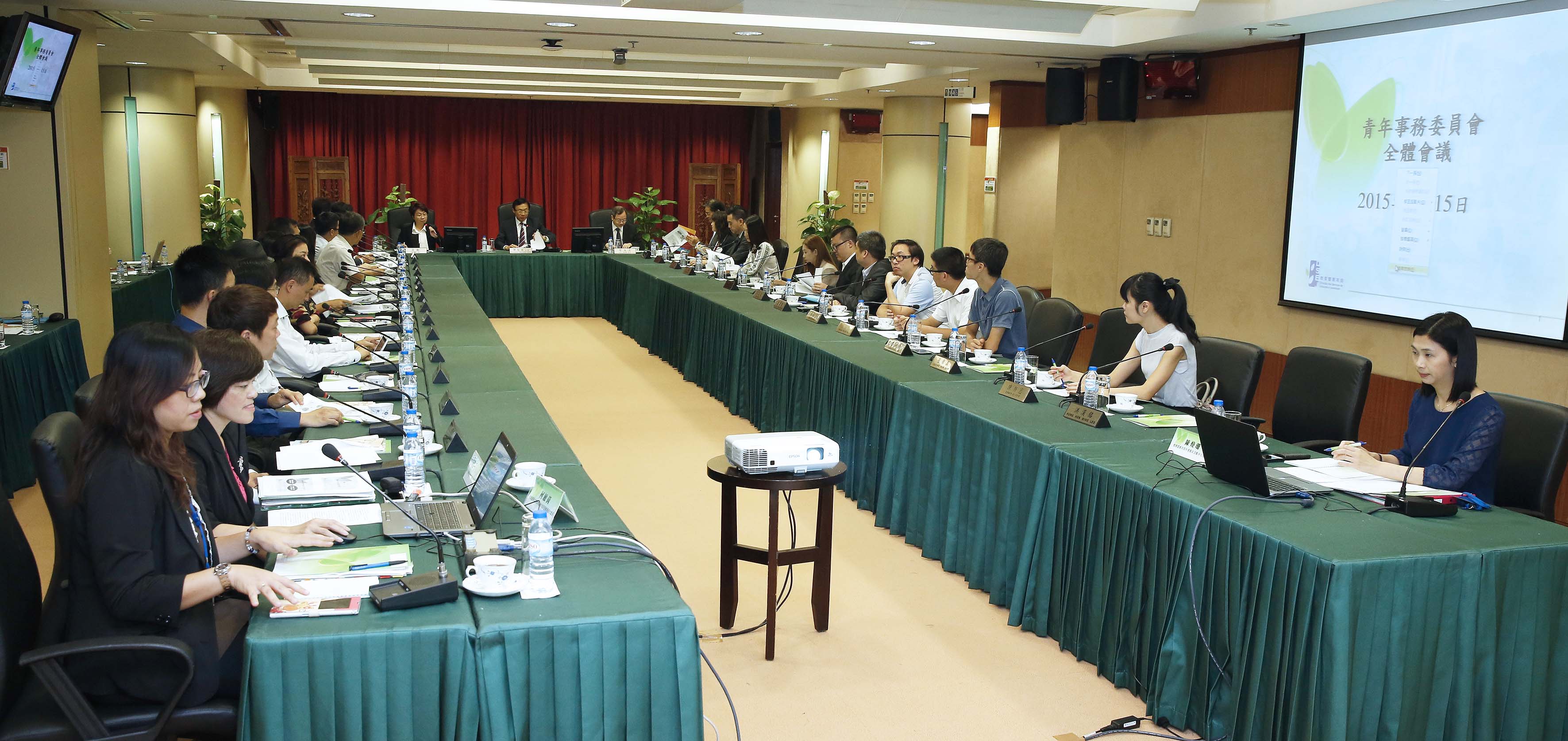 青年事務委員會於9月15日上午在教育暨青年局一樓仲尼堂召開全體會議。會議由青年事務委員會主席、社會文化司司長譚俊榮主持。會議議題包括簡報青年政策的執行情況,簡介藝術教育活動,簡介青年社團年度活動資助計劃開展情況,並聽取委員意見和建議。