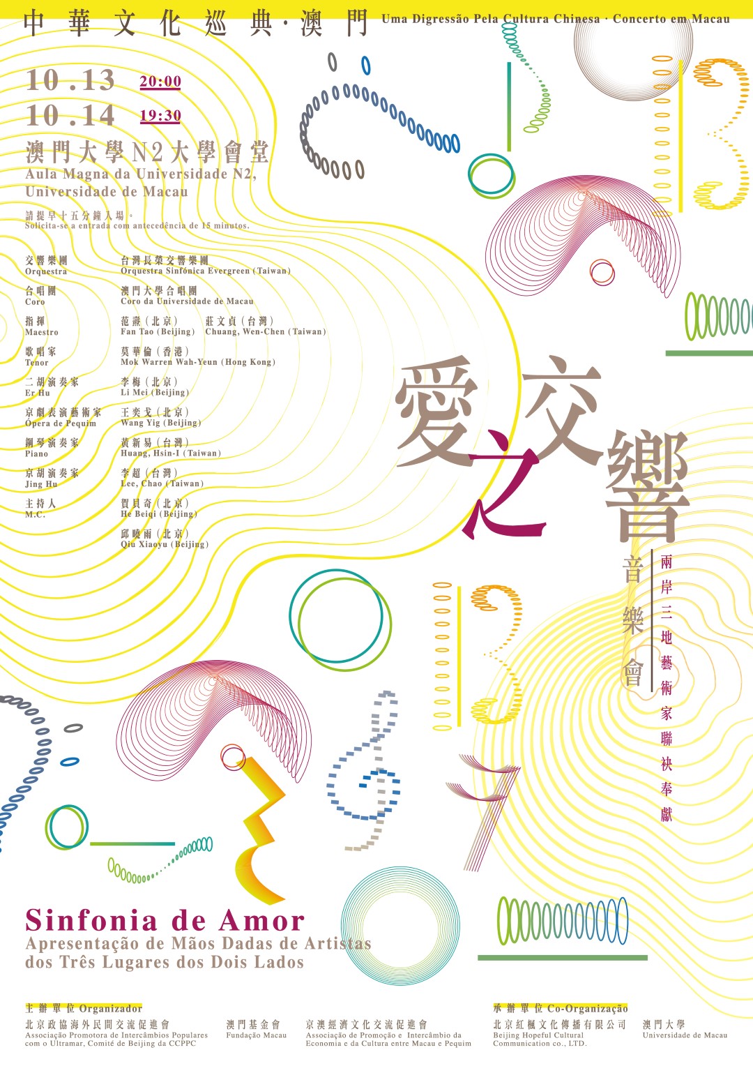 為弘揚中華傳統文化,推動中華文化走向世界,促進本澳青年與內地的文化交流,同時進一步推動本澳文化活動的發展,由北京政協海外民間交流促進會、澳門基金會、京澳經濟文化交流促進會主辦,澳門大學和北京紅楓文化傳播有限公司承辦的“中華文化巡典(澳門)——愛之交響音樂會”,將於10月14日晚上七時三十分於澳門大學N2大學會堂上演。門票於即日起在澳門售票網(廣星傳訊)免費派發。