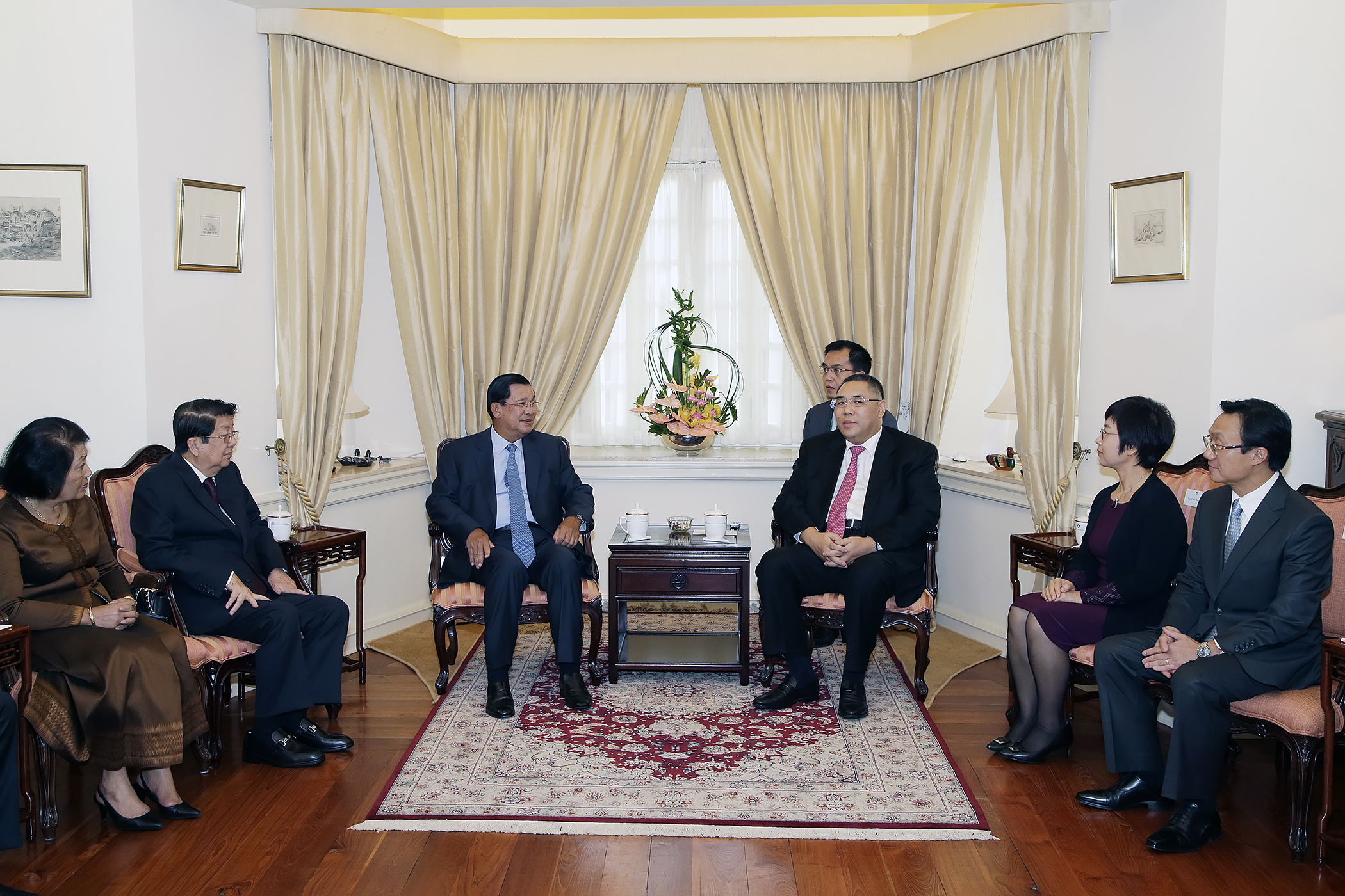 行政長官歡迎洪森首相率團訪問澳門,並出席“世界旅遊經濟論壇‧澳門2015”開幕式。他表示,我國與柬埔寨於1958年正式建交,雙邊關係良好。澳門自回歸祖國以來,與柬埔寨從旅遊到經貿等多個領域均保持很好的合作,藉著洪森首相此行,希望探討更多的合作空間,進一步加強包括旅遊、文化及人力資源培養和交流等多方面的合作。