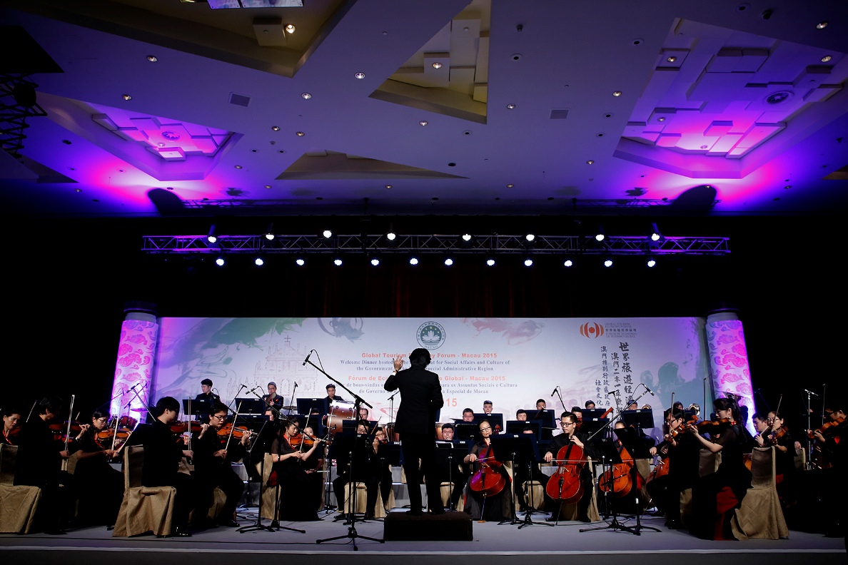 世界旅遊經濟論壇•澳門2015於今日上午隆重開幕,主辦單位澳門特別行政區政府社會文化司特別於同日晚上假新濠天地澳門君悅酒店舉行盛大歡迎晚宴,款待參與論壇的中外嘉賓,並祝願在明天的交流討論中為促進全球旅遊合作帶來更多創見。