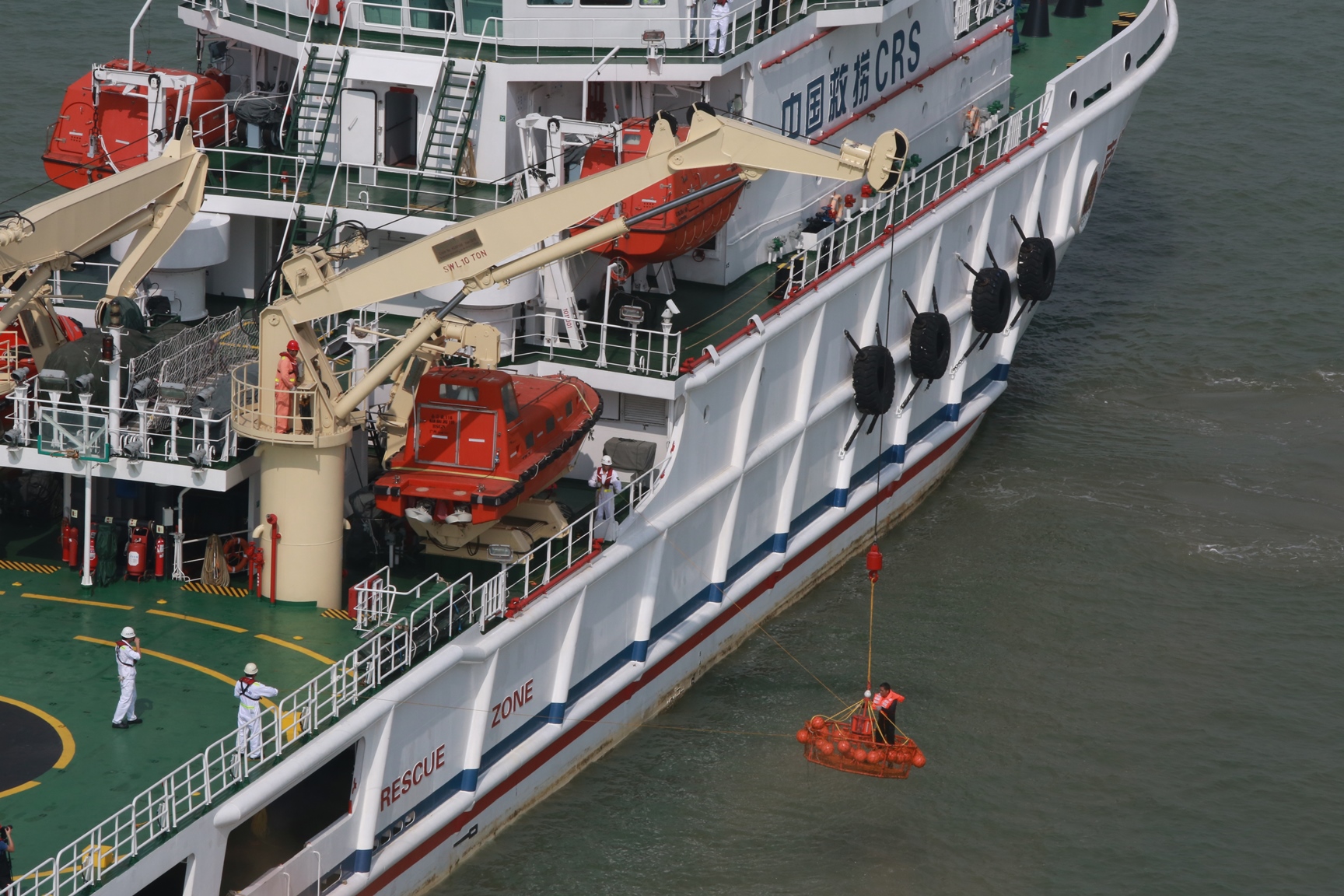 演習模擬一艘高速客船“珠江號”與貨船“順利號”在珠江口水域發生碰撞,高速客船“珠江號”破損進水,4名旅客落水,船上120人急需轉移救助,“順利號”碰撞後出現油污並起火,並有1名船員受重傷,需由飛機送院。