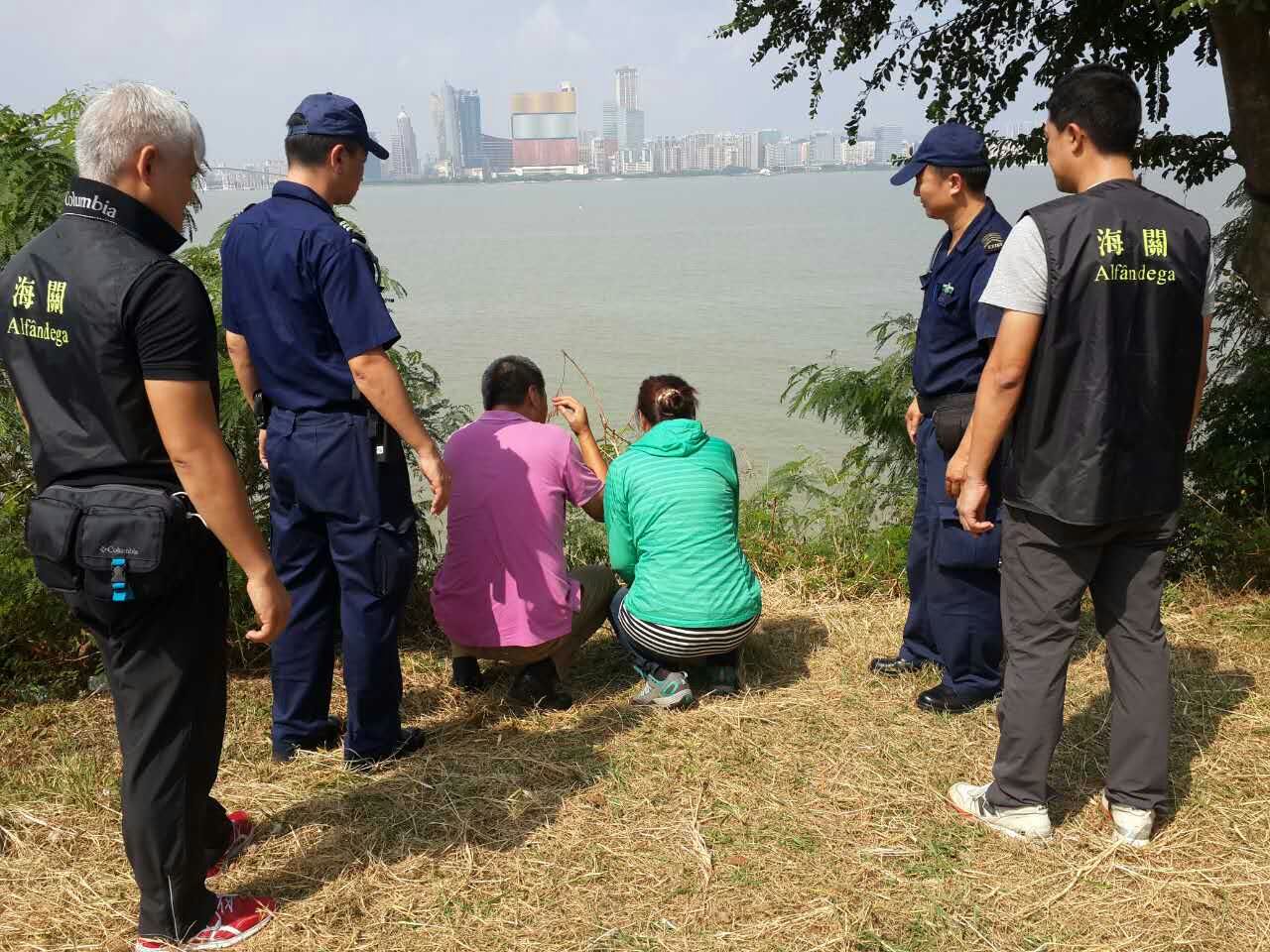 於凌晨3時,該艘可疑大型機動木船在新城填海A區對開,近大九洲對開西南面0.5海里被珠澳海上執法船艇合力截停,大型機動木船上共兩名男子拒絕合作,在珠海邊防武警上船調查時非但未能出示船牌簿及交代身份,其中一人並突然拿出利刀向邊防施襲,使一執勤武警左臂及手掌中刀,及後經送院縫針及治理後情況穏定。該艘可疑大型機動木船及船上兩男子被珠海邊防帶走候查,而在澳門氹仔岸邊拘捕的一男一女則被連夜帶返澳門海關總部協助調查。該男子姓勞,女子姓馬,同為48歲,於當晚2時許,從珠海某處乘坐機動木船,聲稱第一次偷渡來澳,給予偷渡費每位人民幣七千五百元,目的為了賭博。