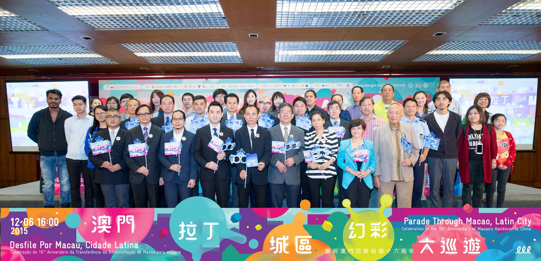 文化局於十一月五日下午三時假旅遊活動中心二樓大會議廳舉行新聞發佈會,文化局局長吳衛鳴、體育發展局副局長劉楚遠、文化局副局長梁曉鳴、陳炳輝、旅遊局旅遊產品及活動廳廳長梁美彩、民政總署文化康體部部長蔡志雄、教育暨青年局青年廳廳長袁凱清、消防局總長王健、澳門亞太拉美交流促進會理事長魏美昌、文化局文化活動廳廳長楊子健、文化局文化創意產業促進廳代廳長何嘉榮、治安警察局行動暨通訊處處長張映順、交通事務局協調處處長莫垂道、文化局特別計劃處處長林俊強、澳門航空公關部總經理趙洪、澳門廣播電視股份有限公司社會文化暨經濟節目科經理葉國華、澳門街坊會聯合總會副理事長李卓君、水荷雀坊眾互助會理事長李偉民及三巴門坊眾互助會理事長謝美玲,以及兩位插畫師霍凱盛及袁志偉、參與本年大巡遊的藝團代表出席。