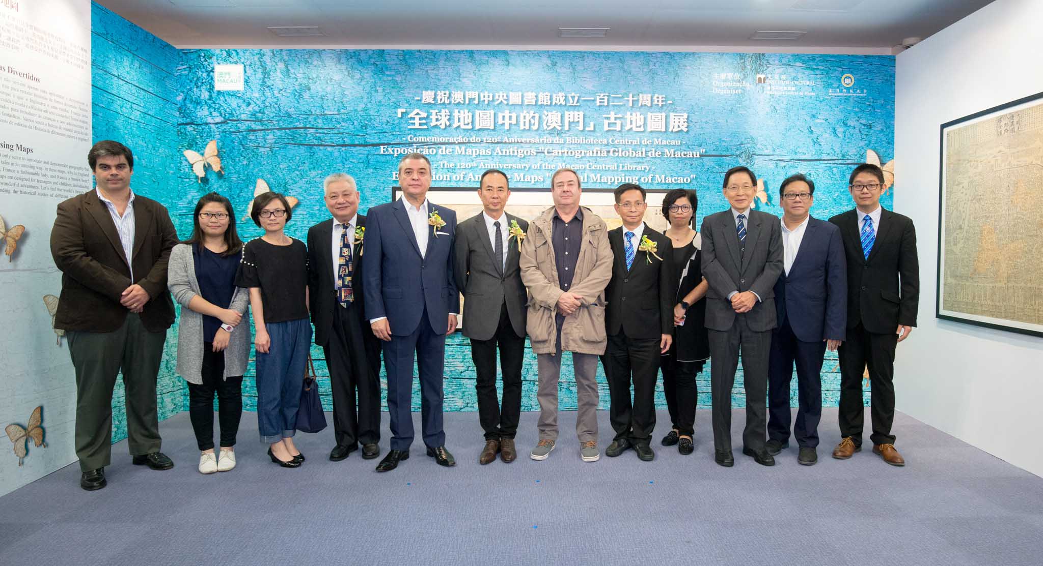 為慶祝文化局澳門中央圖書館成立一百二十周年及澳門申遺成功十周年,澳門中央圖書館與澳門科技大學圖書館合作主辦“全球地圖中的澳門”古地圖展,並於今日(十一月六日〉下午六時正在何東圖書館舉行開幕式,由文化局局長吳衛鳴、澳門科技大學副校長、講座教授彭樹成、文化諮詢委員會委員馬若龍及澳門科技大學圖書館館長戴龍基主持。
