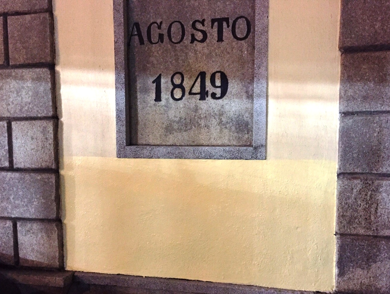 傍晚時份被塗鴉的牆身已恢復原貌。