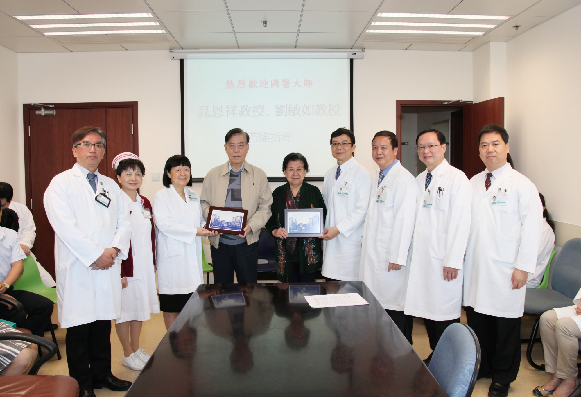 晁恩祥及劉敏如國醫到訪鏡湖醫院,該院馬學章院長及中醫科全體人員熱烈歡迎,中醫科代表向兩位國醫介紹鏡湖醫院及中醫科的狀況,期間兩位國醫與中醫科的醫生互動交流。其後,晁恩祥及劉敏如國醫分別為該院中醫呼吸專科及婦科專科的醫生作臨床指導,就有關脈象及開立處方方面作詳細交流。