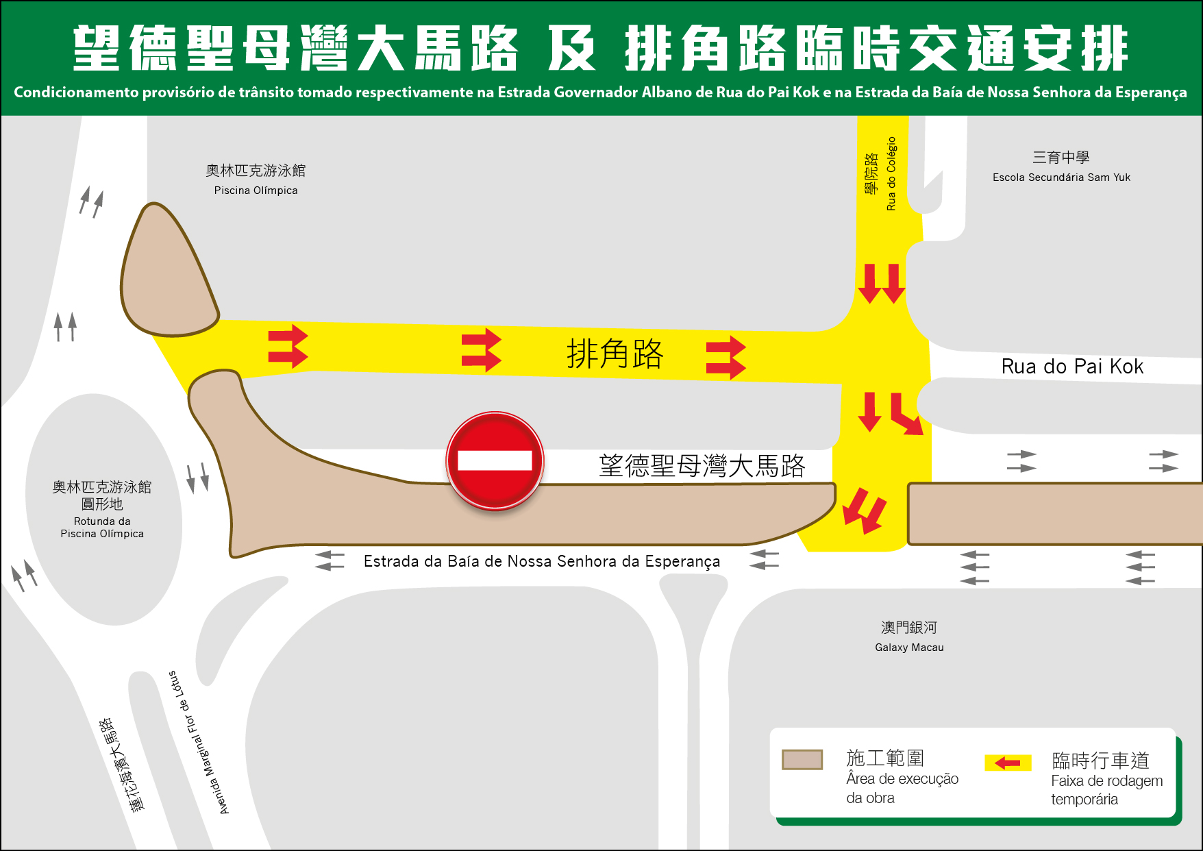 望德聖母灣大馬路輕軌高架橋的建設正有序進行,並即將開展近奧林匹克游泳館圓形地的一段預製件吊裝。為維持交通流向及確保施工安全,本周日(15日)起,介乎氹仔奧林匹克游泳館圓形地與學院路之間的一段望德聖母灣大馬路(往機場方向)會實施封閉交通,其間,車輛可取道排角路或其他道路行駛,為期約50日。同時,學院路右轉往望德聖母灣大馬路的臨時道路會重新開放,以方便車輛經學院路前往西灣大橋方向行駛。