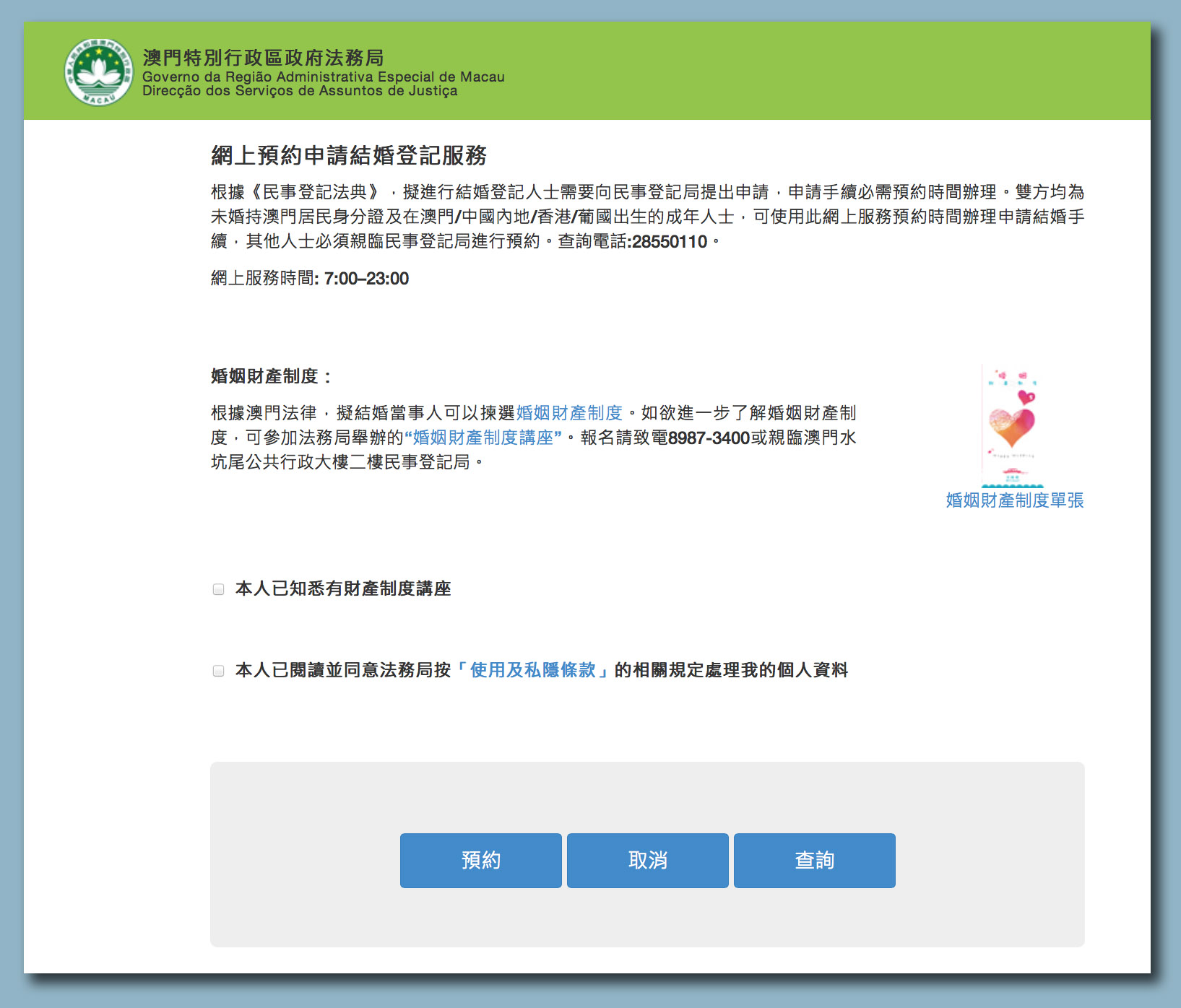 法務局於十月增設“公證服務網上預約系統”,從此居民可在網上預約辦理各公證署服務,縱使在非辦公時間亦可進行預約,選取適合自己的時段和地點,還能隨時修改預約,大大減省現場等候時間。