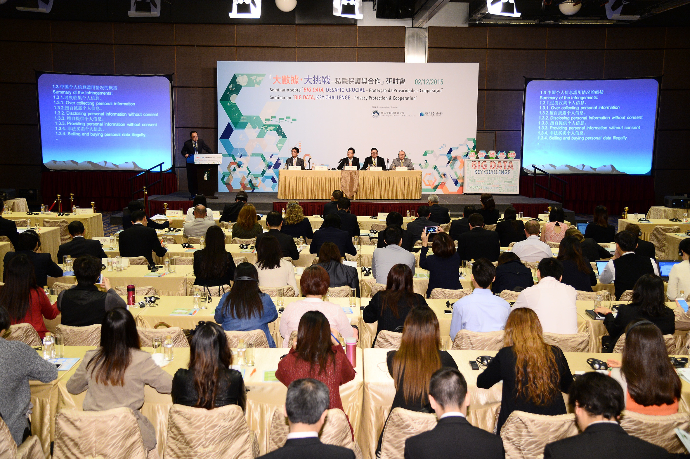 適逢第44屆「亞太區私隱機構組織」論壇在澳門舉行,主辦單位特別舉辦「大數據‧大挑戰──私隱保護與合作」研討會,邀請澳洲、新西蘭、葡萄牙、內地、香港、台灣及澳門相關領域或產業的專家、學者,共同探討在大數據環境下,私隱保護的合作和發展方向。亞太區私隱機構組織代表、澳洲資訊專員公署助理專員Angelene Falk及資料保護及私隱專員國際會議執行委員會主席、新西蘭私隱專員公署私隱專員John Edwards,分別回顧了「亞太區私隱機構組織」發展,以及介紹國際社會如何協調私隱保護和發揮大數據優勢。葡萄牙資料保護國家委員會主席Filipa Calvão亦以大數據、個人資料的國際轉移和資料保護機構之間的合作為題發表演講。