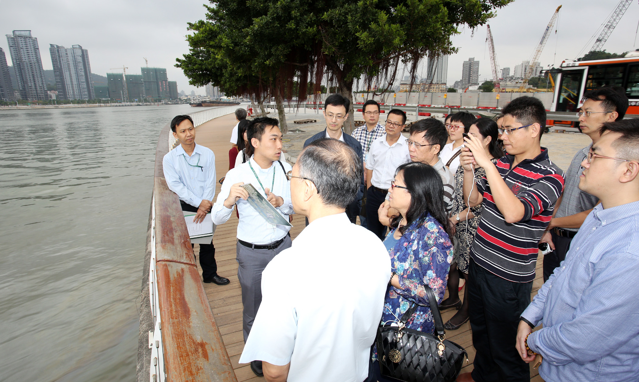 珠海小組一行日前來澳出席“珠澳城市規劃與跨境交通研究工作小組第五次會議”。會議由澳珠雙方組長,土地工務運輸局局長李燦烽、珠海市住房和城鄉規劃建設局局長王朝暉共同主持。會議舉行前,珠海代表團首先考察媽閣至內港一帶,實地了解有條件興建擋潮閘的位置。