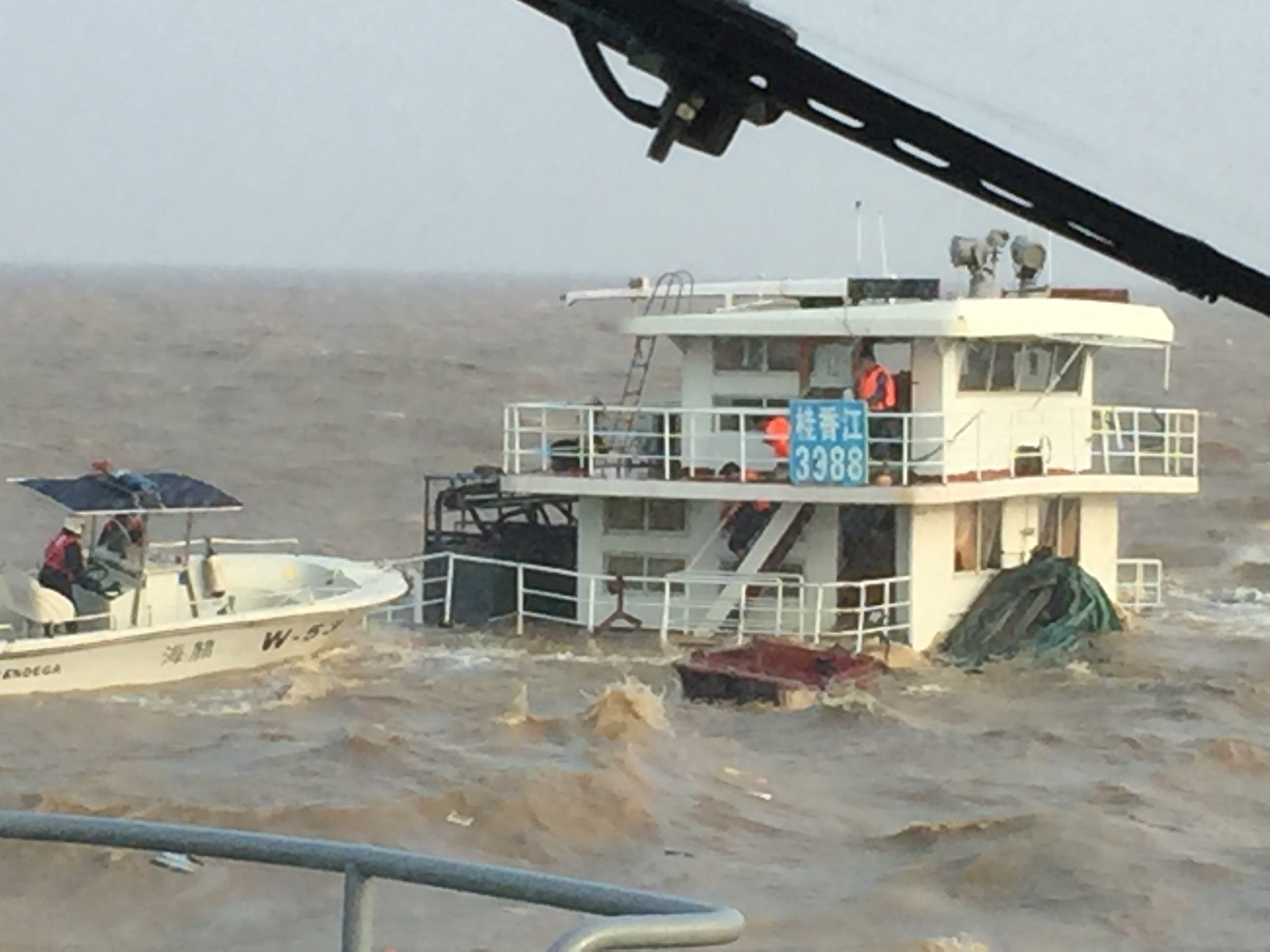今早約7時,海事及水務局船舶交通管理中心接報一艘由深圳出發前往珠海斗門的內地運沙船“桂香江39xx”,疑因風浪太大導致船倉嚴重入水,在駛經青洲水道1號浮標與本澳機場跑道之間下沉至僅餘兩層駕駛台橋樓露出水面,船上三名船員需要棄船逃生。海事及水務局馬上通知海關,海關派出快艇、巡邏船及潛水隊到場救援,運沙船上三名船員被救起後送往青洲海關總部,無人受傷。
