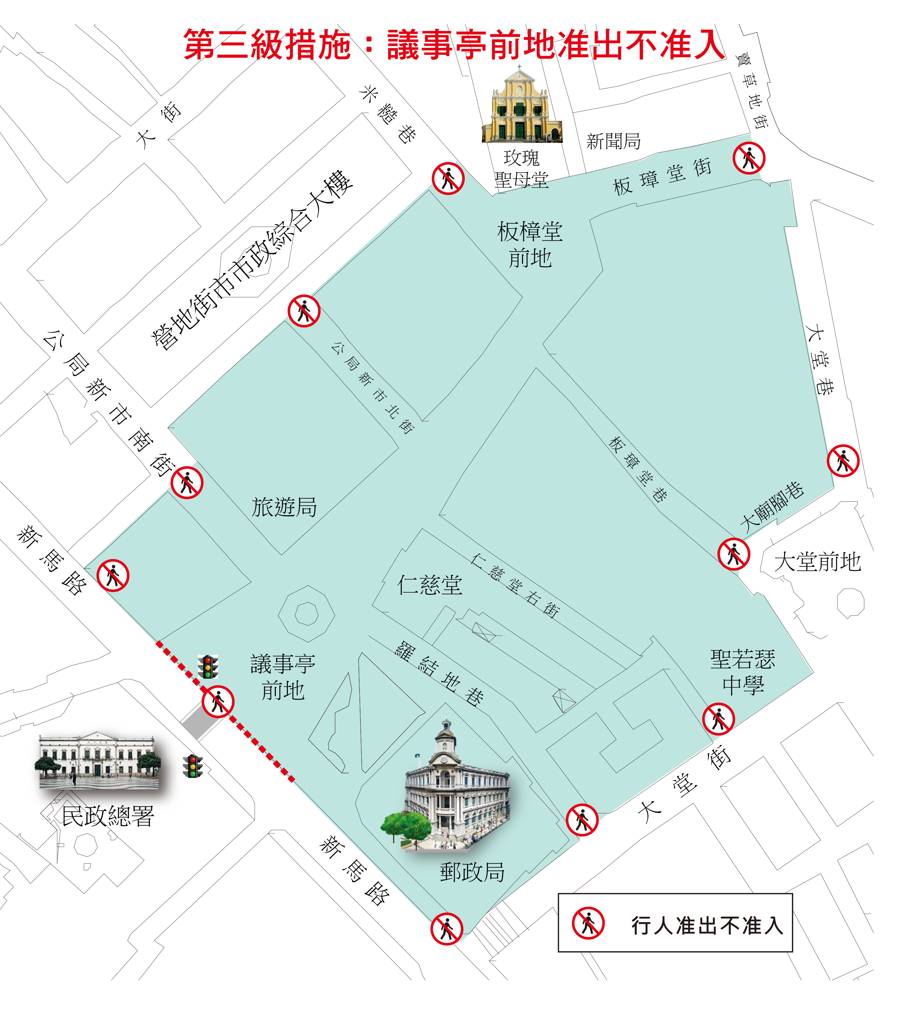 當新馬路及議事亭前地人群出現大範圍擠擁時,在第二級的基礎上,議事亭前地至玫瑰堂整片區域將會視乎實際情況採取局部或全部封閉,屆時在區域內的人群可以離開,區域外的人士不可內進。