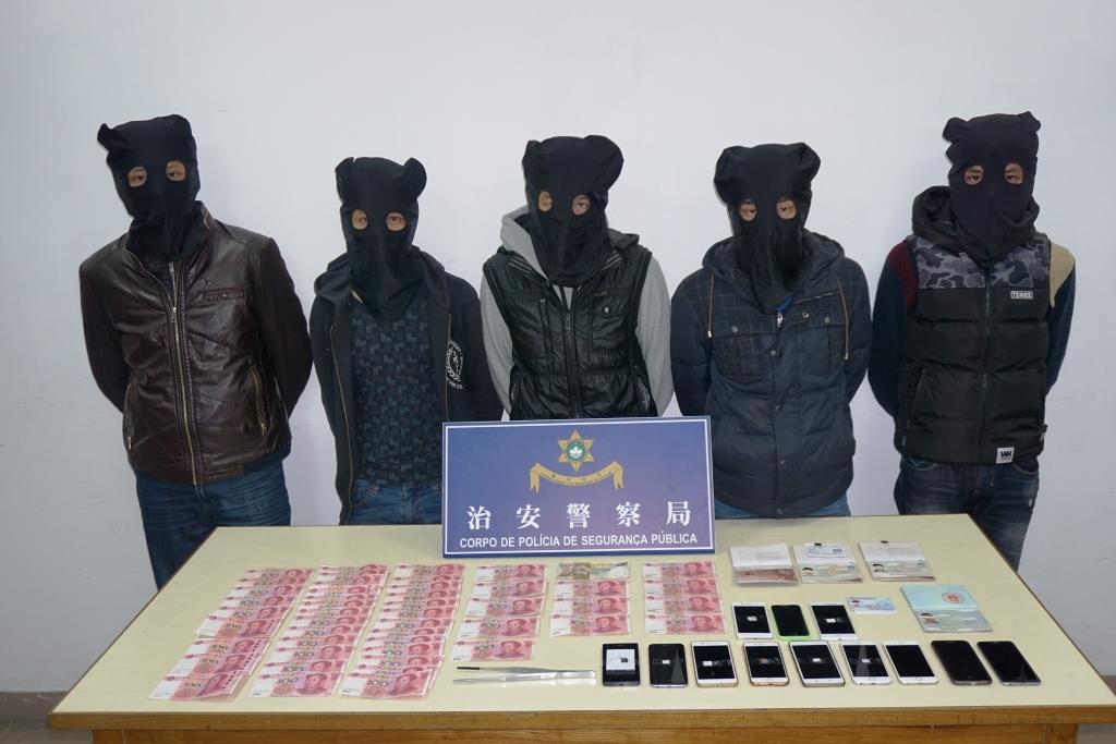 嫌犯分別姓廖、覃、劉、黃和何,男性,年齡介乎27歲至35歲,分別持中國往來港澳通行證及中國護照,因涉嫌觸犯「加重盜竊罪」將被移交檢察院處理。
