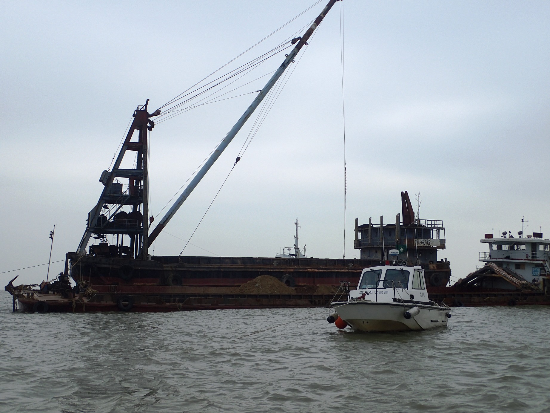 今早約七時,海事局船舶交通管理中心接報,有一艘長約60米的沙船在友誼大橋以東約600米的海面擱淺,並報稱船身出現入水情況。海事局馬上與海關啟動聯動機制,海事局派出兩艘船隻、海關派出六艘船隻及二十多名人員前往現場協助,海關潛水隊亦到現場戒備。擱淺沙船上有三名船員,沒有受傷,沙船沒有即時危險,海關船隻到達現場後借出水泵協助沙船抽走積水,並維持附近航道的通航秩序,其後船隻的入水情況受到控制。現時肇事船隻已基本脫淺,然而為確保其續航的安全,肇事船隻現正進行沙石過駁以減少負載,海事局與海關船隻亦在現場戒備和協助。