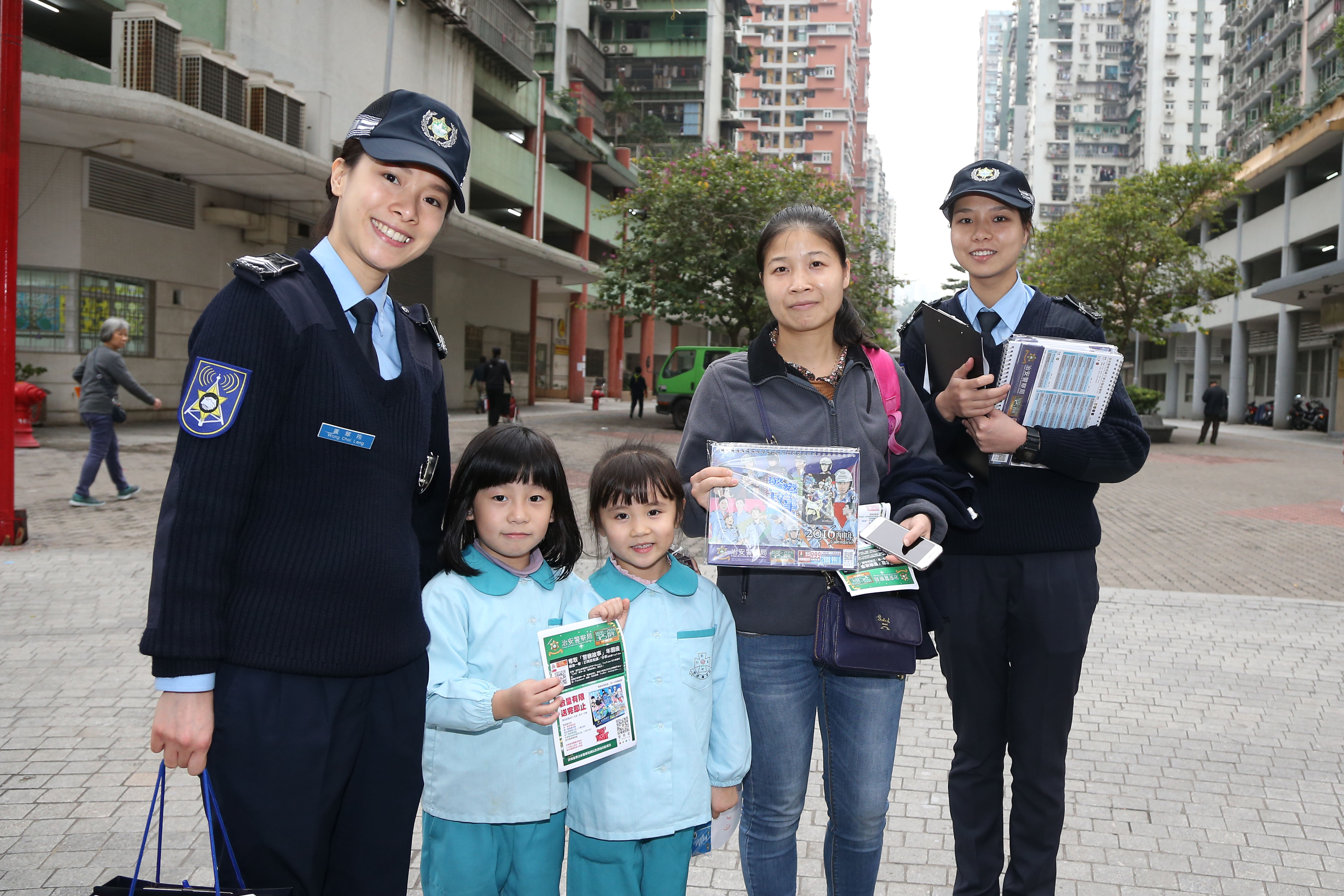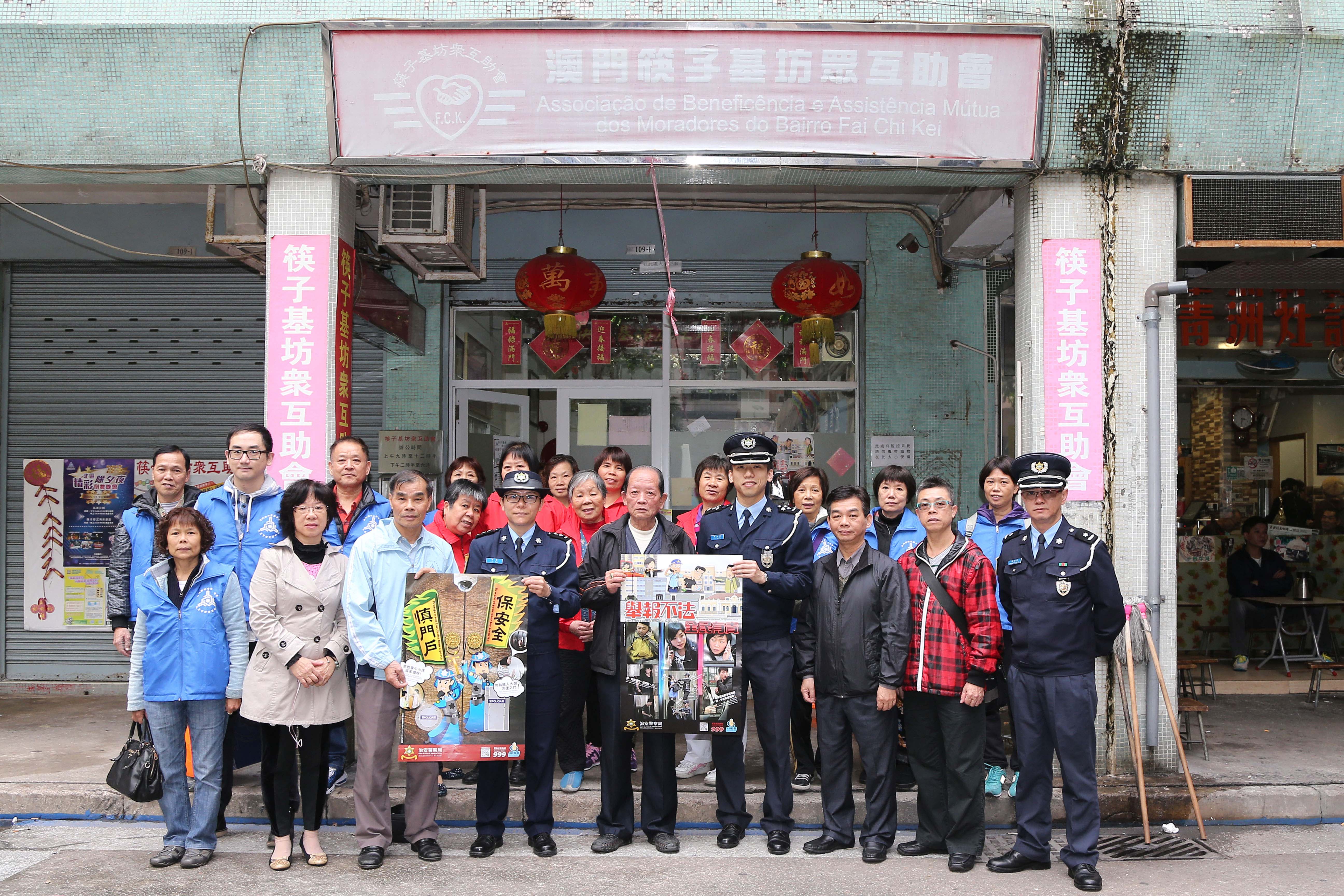 是次活動由治安警察局 行動廳公共關係處李德輝警司、交通廳李勤副警司、澳門警務廳第二警務警司處曾健明警長、澳門街坊會聯合總會大廈管理資源中心秦昶主任、澳門街坊會聯合總會大廈工作委員會林文彬顧問、筷子基坊會陳少佳副秘書長與各大廈業主代表等一行二十多人,向區內大廈住戶及管理員講解慎門戶安全資訊,並沿途向市民及商戶派發有關防罪滅罪的宣傳單張、海報及2016年「警察故事系列」精美座枱曆。