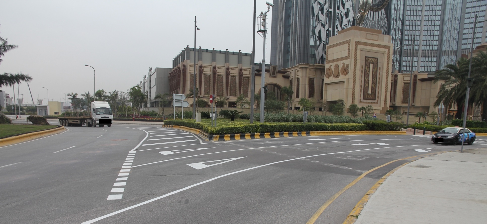 隨著近年路氹城迅速發展,路氹連貫公路與周邊路段的車流量日漸提高,交通事務局早前聯同的士業界團體一同前往現場視察及評估交通情況,經聽取及後分析有關意見,於路氹連貫公路往路氹城大馬路方向,調整一條車道為右轉行車線,以加快疏導右轉及迴轉之車流,滿足行車需要;同時於路氹連貫公路近蓮花圓形地劃設一條車道為獨立左轉之車道疏導車流,一併理順蓮花圓形地的行車秩序。相關地段與車道的交通標誌及標線調整工作已完成。