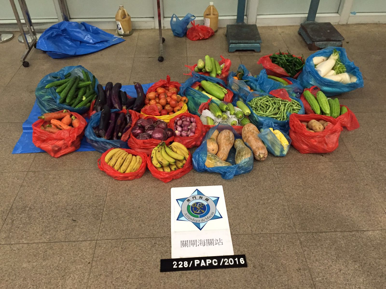 今天(26日)下午約一時三十分,海關在關閘進境車道實施突擊檢查,在一輛自珠海返澳的兩地牌私家車前後排座位和車尾箱發現大量未經檢疫蔬果,十六種不同類別,共重約105公斤。海關翻查車輛過往記錄,證實該車從2014年12月至2015年10月期間,曾有四次違規記錄,當中涉及違法司機兩名。海關已依法進行起訴,並將未經衛生檢疫的食材交民政總署處理。