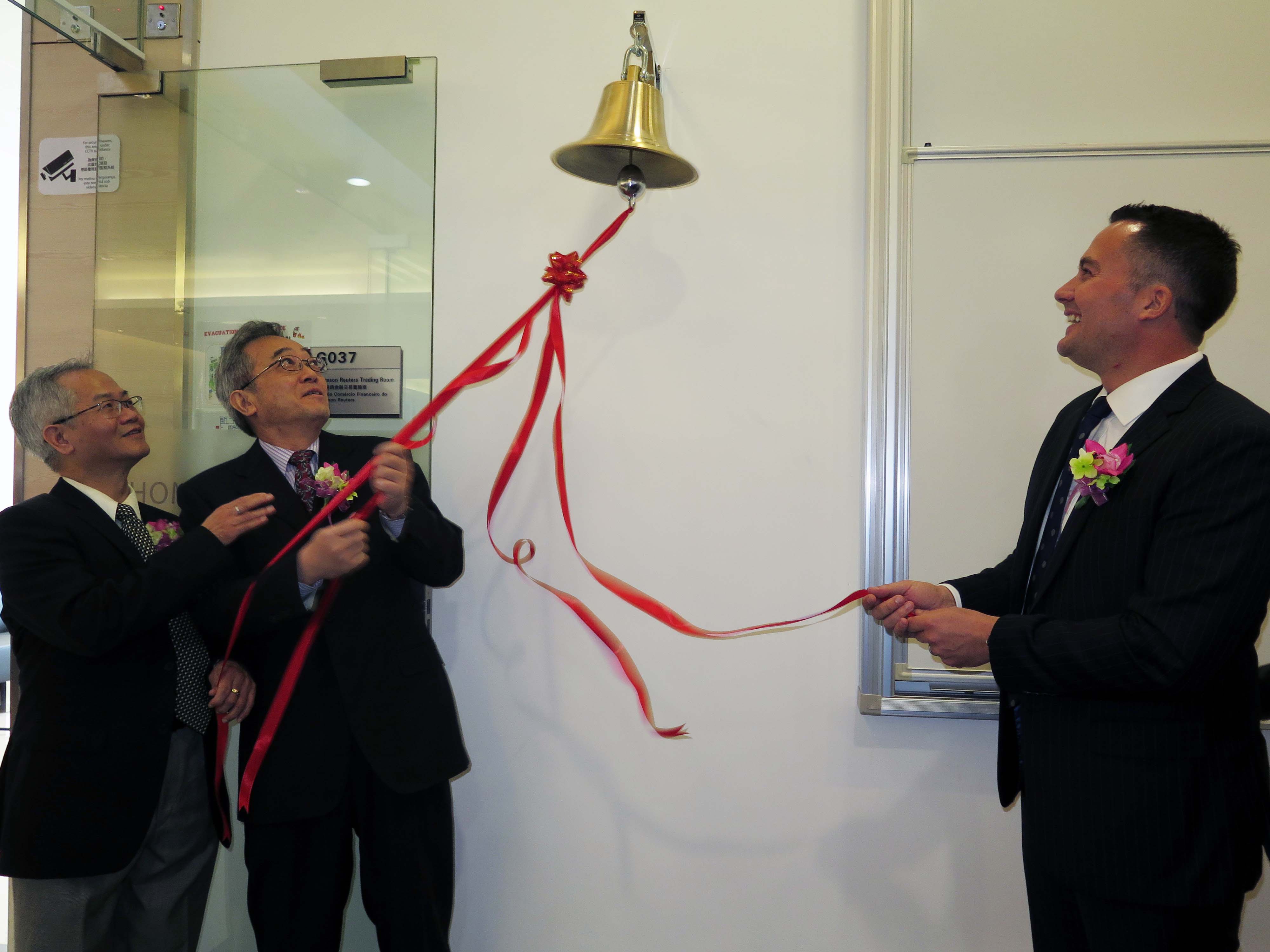 澳大副校長(學生事務)程海東教授、工商管理學院院長蘇育洲,湯森路透北亞區財務風險業務總裁James Mirfin及港澳區銷售總監陸慧敏為交易室開盤。程海東致辭時表示,隨着實驗室數量增多,澳大學者的科研能力得以大大提升,同時為學生建設更完善學習環境。程副校長感謝湯森路透集團長期支持澳大發展,他深信湯森路透金融交易實驗室定能為學生提供世界一流的摸擬交易環境,使學生更貼近金融市場實況,獲得寶貴的實踐經驗。